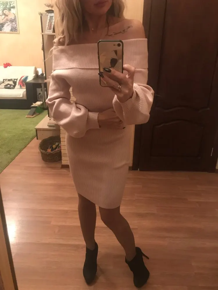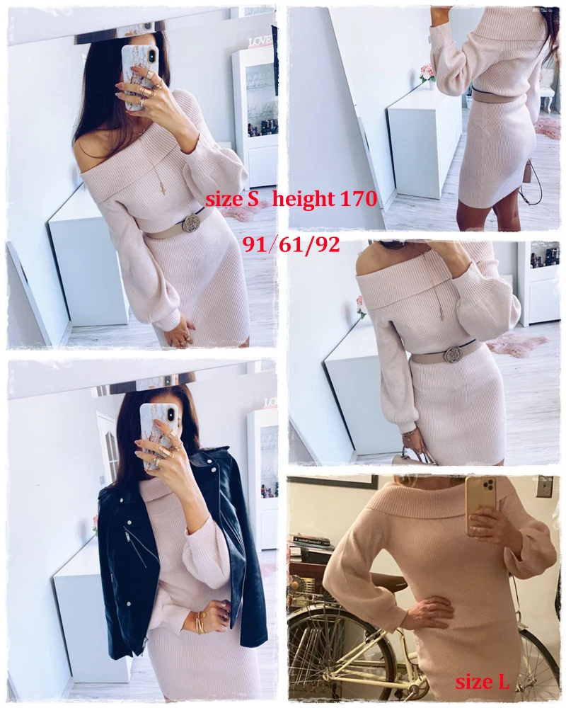 FREE SHIPPING Elegant Women Knitted Dress Off Shoulder Long Sleeve Sweater Dress Chic JKP3823