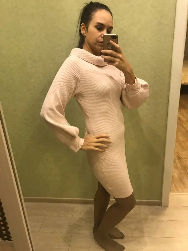 Very long shipping! In the Lviv region for 3 Ri months!!! But all the time the store was in touch and politely answered all the questions! The dress is happy, sits perfectly on the figure!!! Girls, dress tight, ie cold autumn, winter, spring, shorter perfect!!!