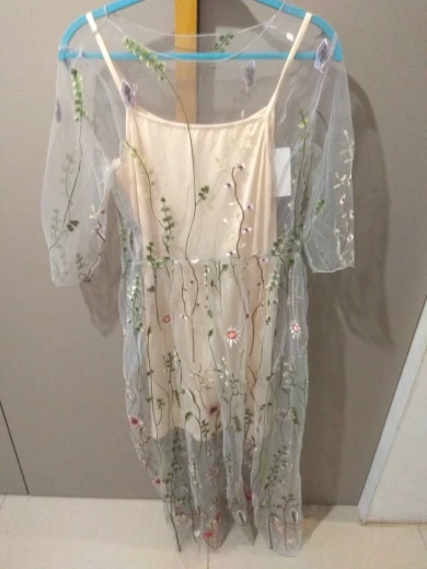 Dress like The seams seemed a little not neat But for such money i think tolerable Took l size a little loose But i wanted to think it would be a little freer. And then in obtyag it will be thought not beautiful for my today's 65 kg... And og100 Growth 170 Good tower The mesh color is pleasant grayish. Maybe on the first slide the dress is more lush than is actually