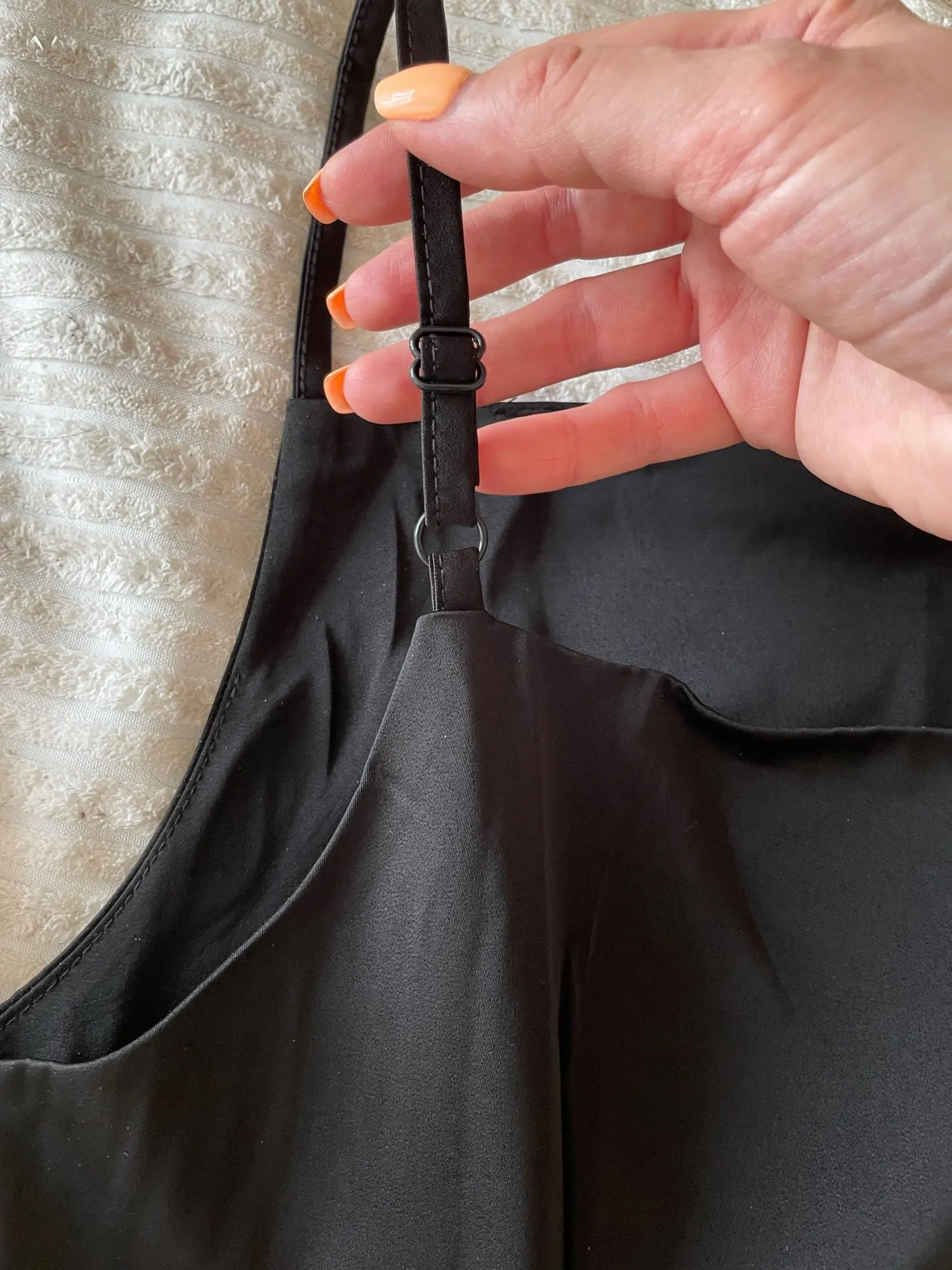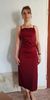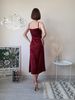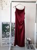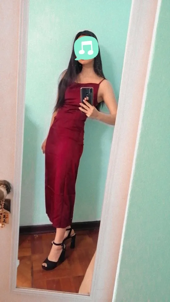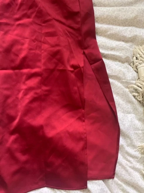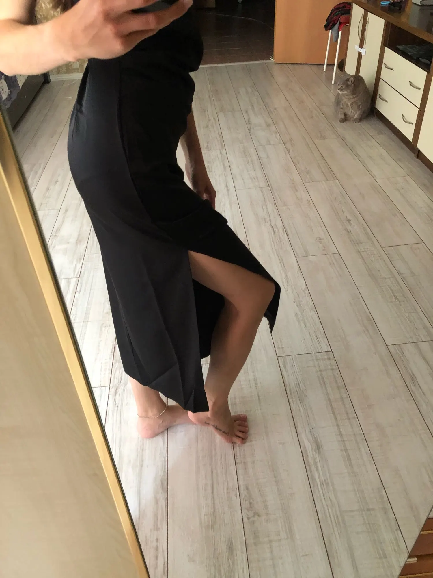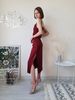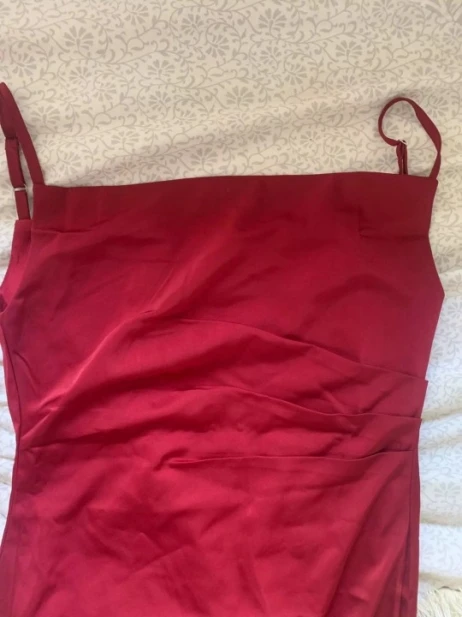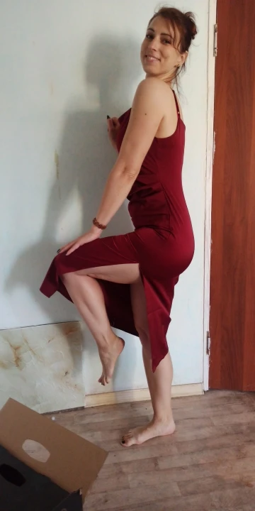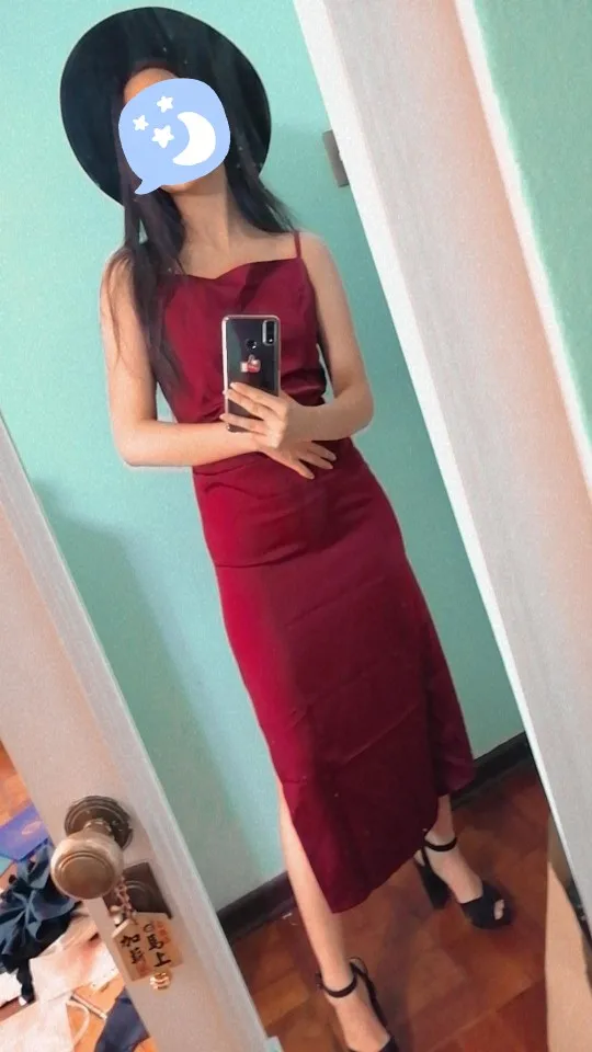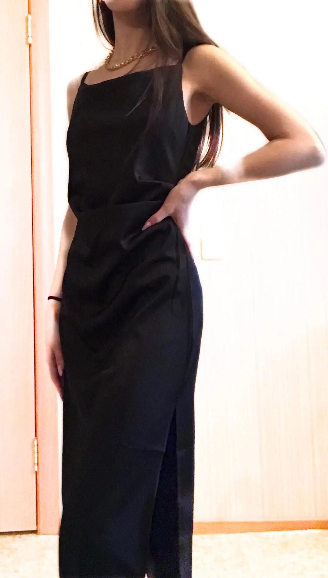 Elegant satin dress with straps I took it in Bordeaux color and XS size. Color saturated, deep, dear. There is also a more usual, black color. The size of me, in general, approached, except that it is slightly large in the waist and hips. On a more figure girl with a small breast will sit even better. The fabric is good, not too thin. Straps are adjustable. Side sewn zipper. The cut on the leg is not too frank. I can safely recommend
