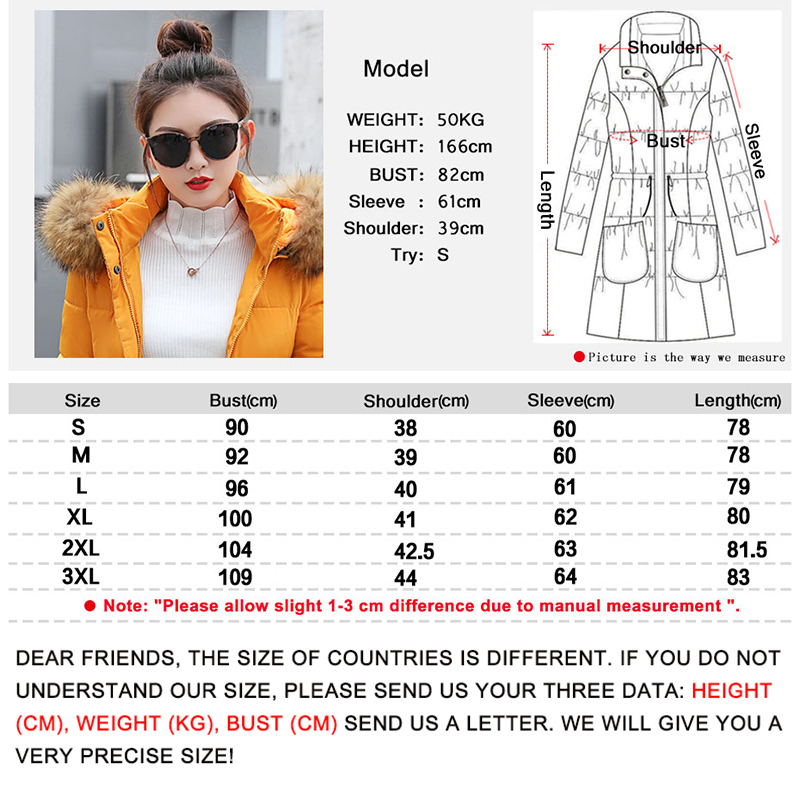 I use 36 in Brazil was perfect. Have 158 cm, 47kg and 63 cm waist. THE coat arrived 33 days after the request in my city (Teresina). Found the beautiful color, but a little different from the picture. The picture looks very opaque and personally has a certain scintillation. The only thing not like was the zipper is a little bad to fit and close but it can be easily replaced. By the collar loose a little. Am Satisfied price and delivery time. Not know if will heat well, not know what material is used inside to keep the body temperature.