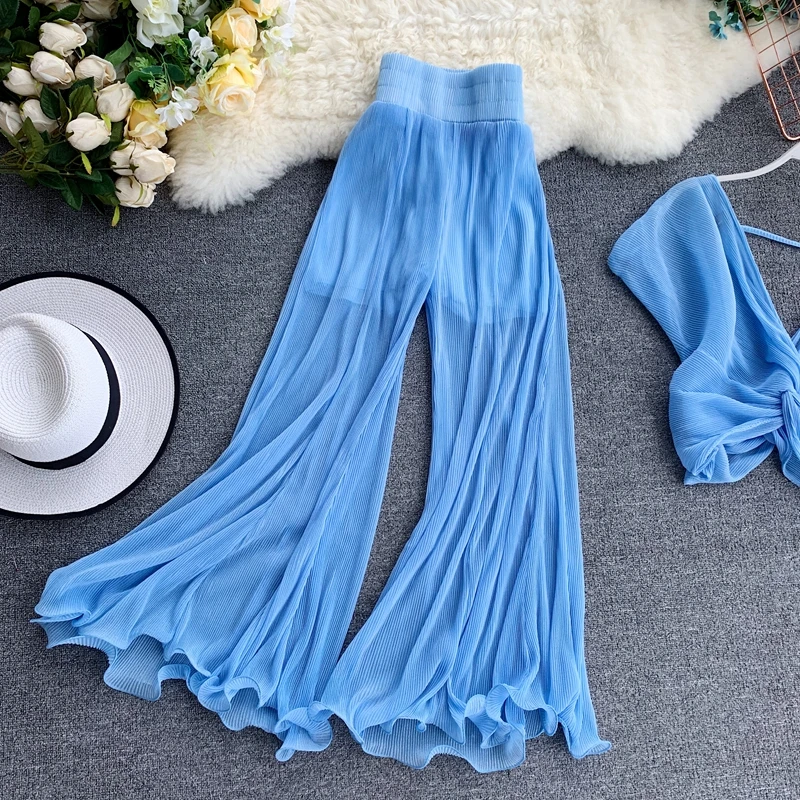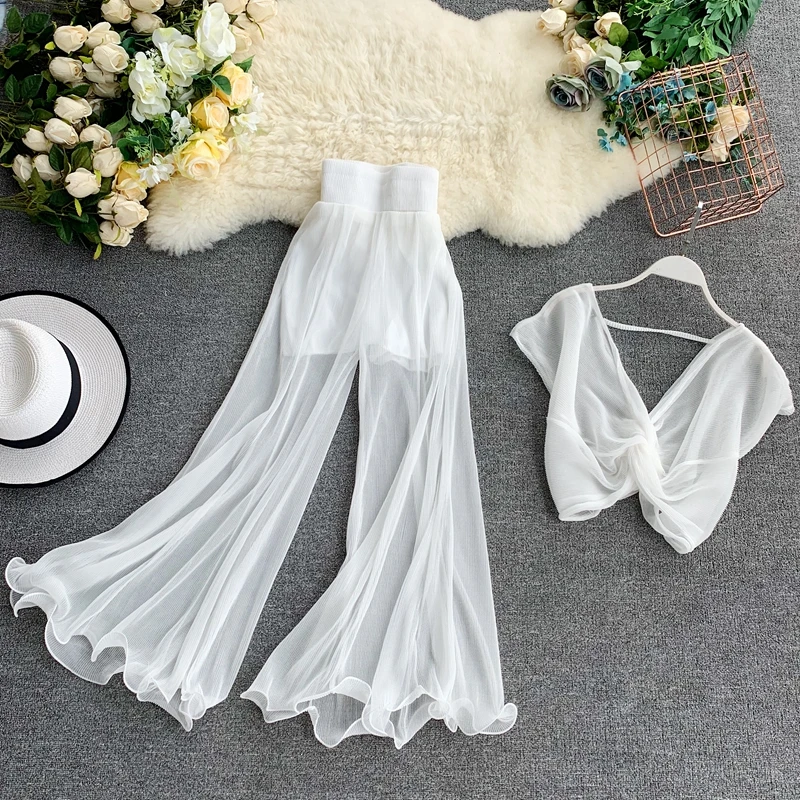 FREE SHIPPING Fashion Flare Long Pants + Short V Neck Tie Bow Shirts Women Two Piece Set JKP3624