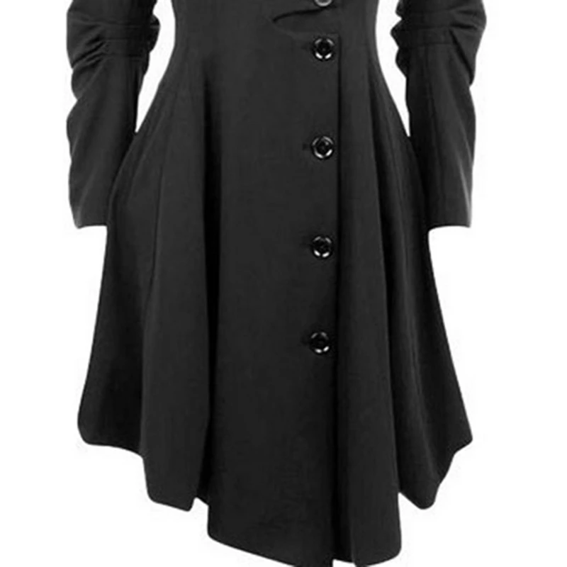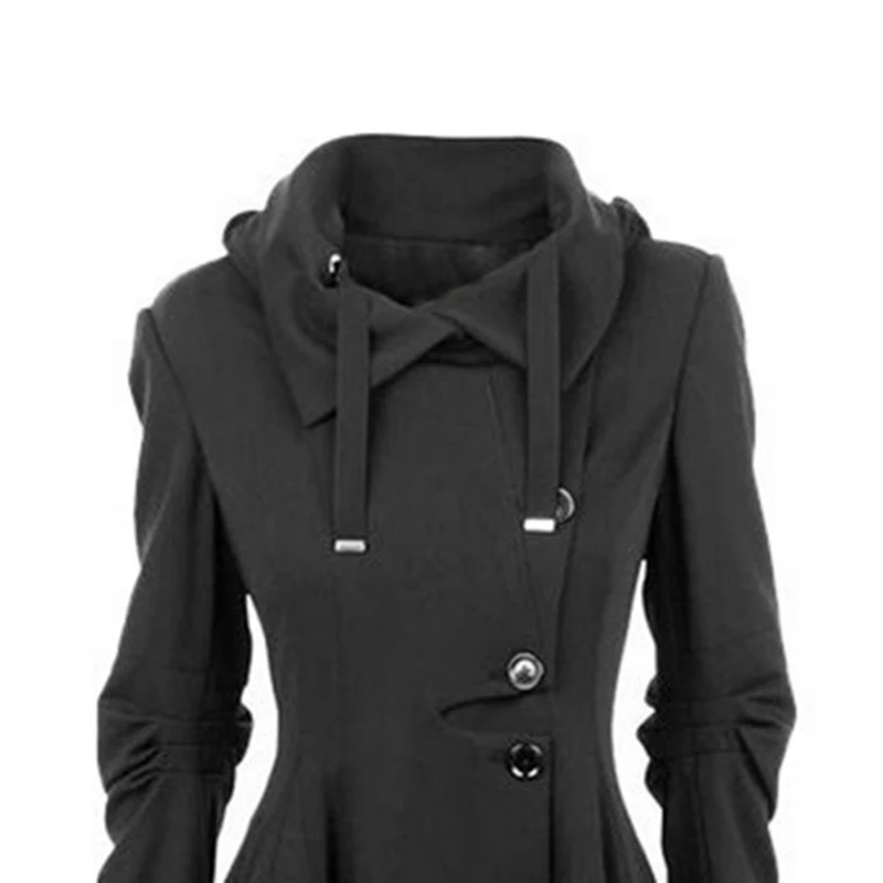 FREE SHIPPING Fashion Long Medieval Trench Woolen Coat Women Black Stand Collar Gothic Overcoat Women Coat Vintage Femme Outwear JKP2068