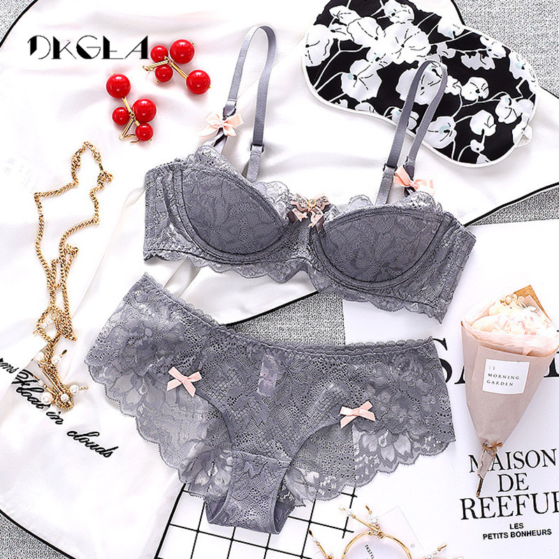 FREE SHIPPING Fashion Sexy Bra Sets Plus Size C D Cup Thin Cotton Underwear Women Set Lace Comfortable Brassiere Gray Bras Embroidery Lingerie JKP2708