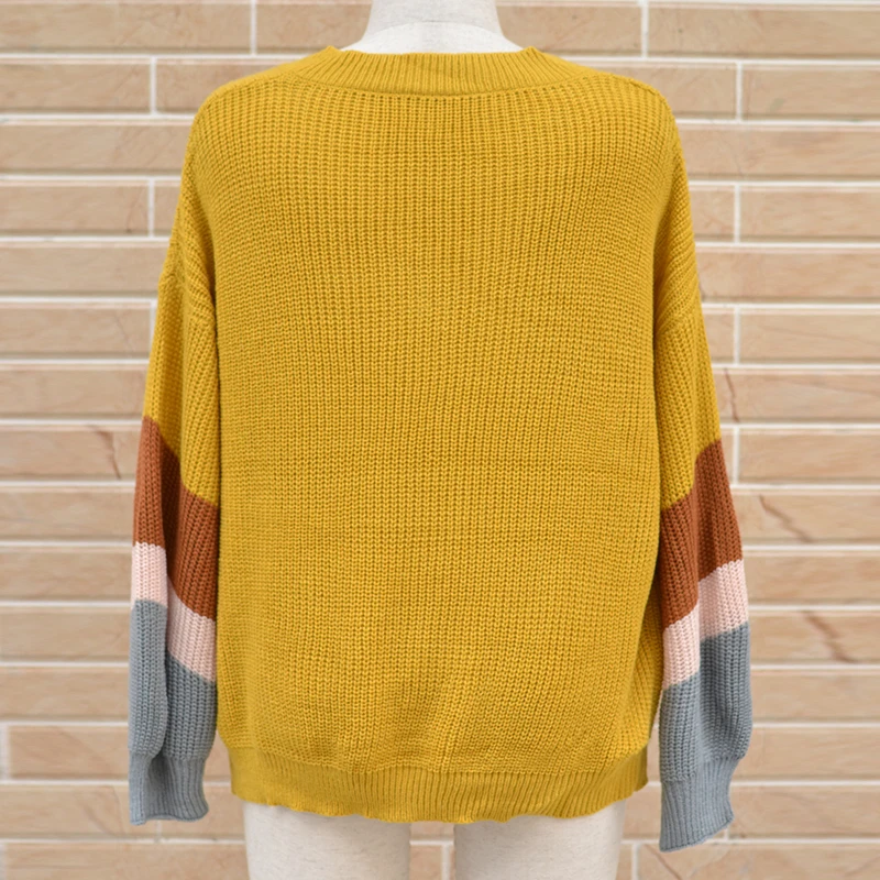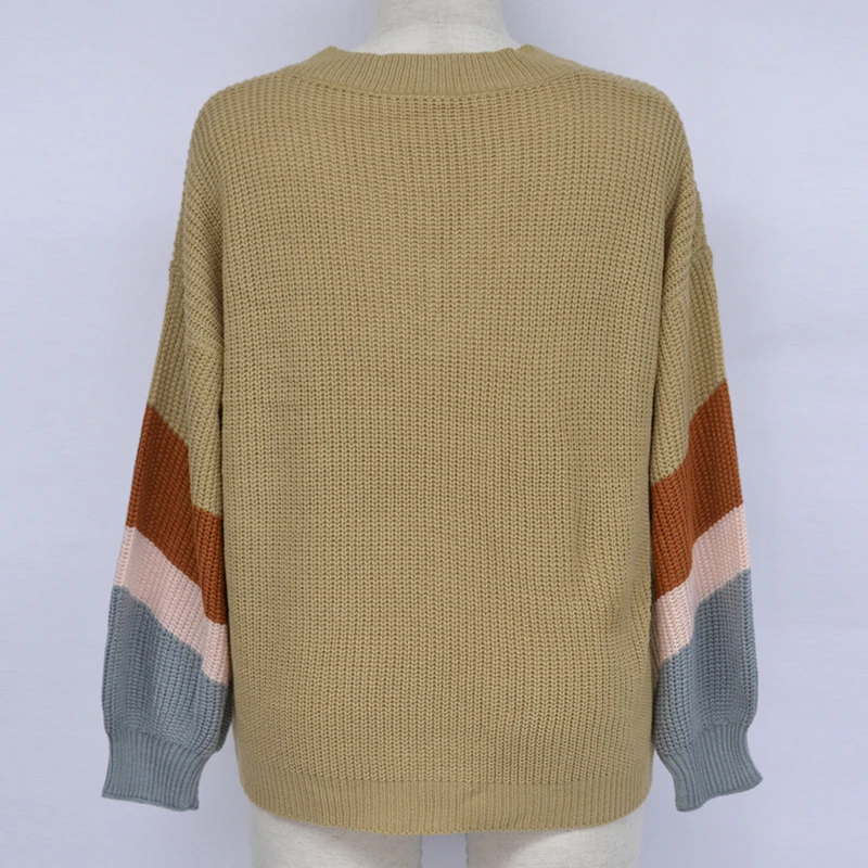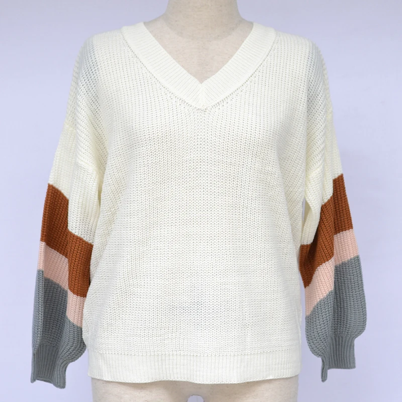 FREE SHIPPING Fashion Striped V Neck Pullover Women Autumn Winter Gray Long Sleeves Sweater Female High Street Loose Mujer Jumper JKP2578