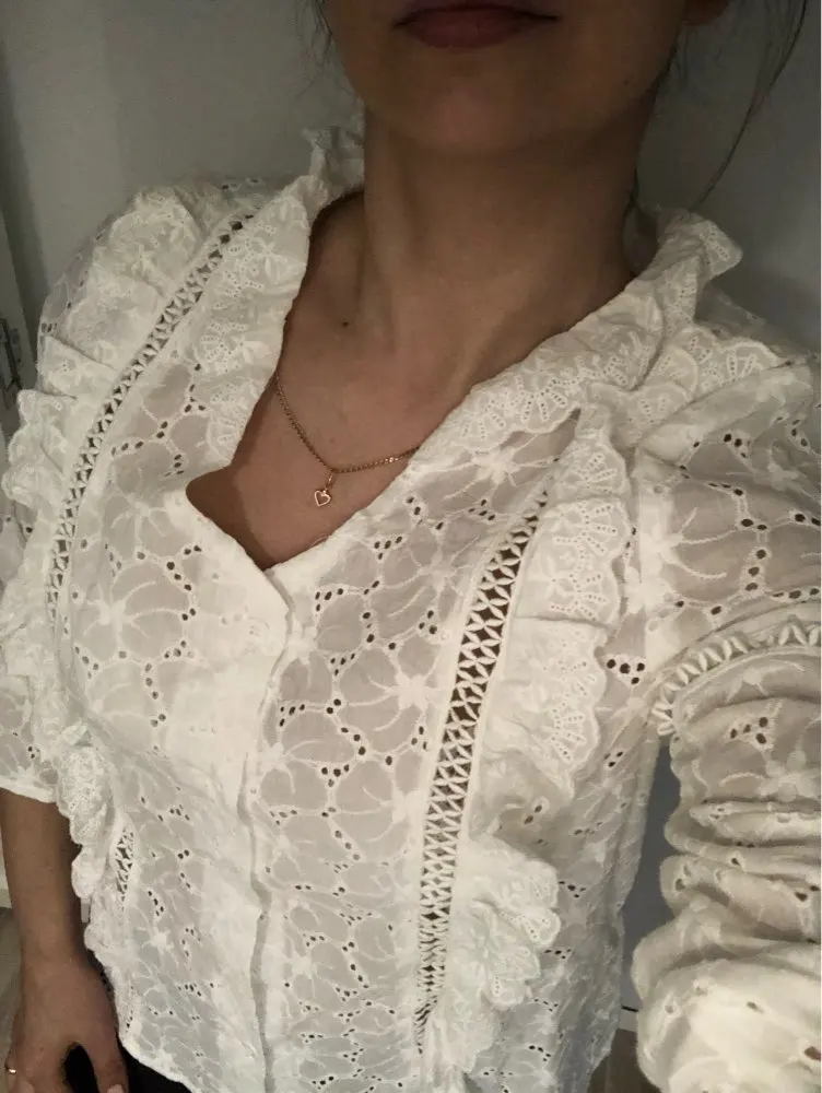 Blouse gorgeous! cotton, feminine design. at 81/61 sat moderately free. i recommend!