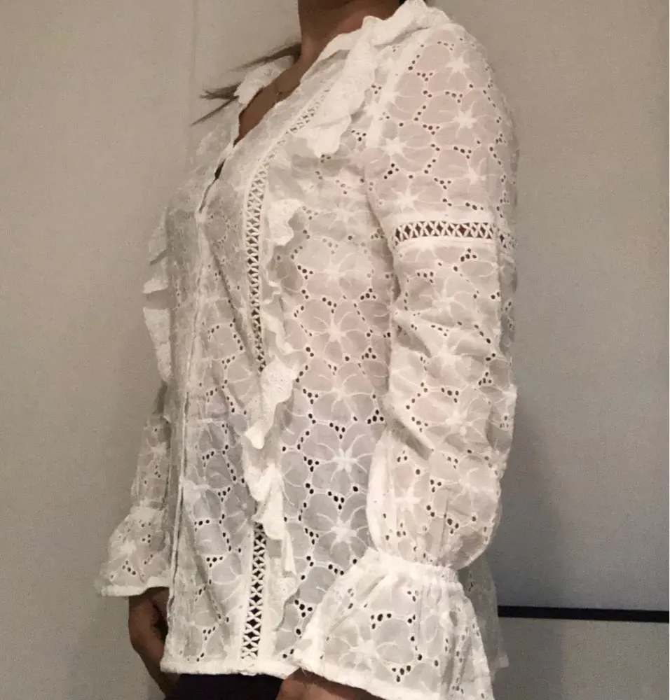 The blouse is luxurious, cotton and very pleasant to the body. In size on the og sat well, but pulls a little in the hands (who has thick hands), wanted to order another one for a bigger size, but they ended; (