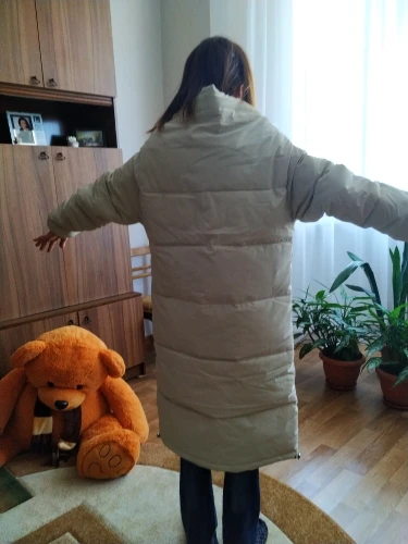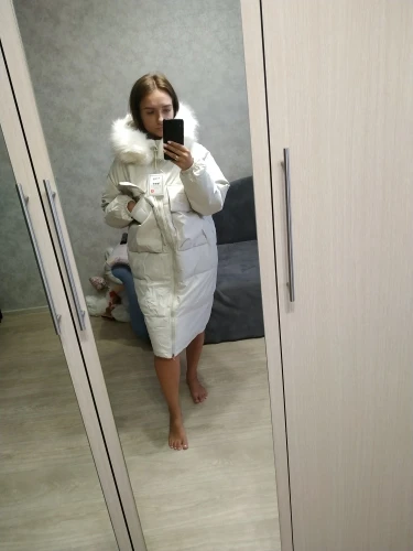 The store sent the goods only after 12 days. And sent only after i wrote myself. To the jacket itself there are no complaints, i liked it. Height 165, weight 50. Sleeves along the length back to back, but i even like it. Sits like an oversize. Threads stick out, but it never embarrassed me. Feels warm, i think in winter it will be normal. There is no smell at all. Fur is so, but i do not need it. In general, i'm happy, for such money 10/10