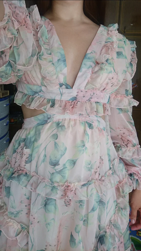 It is a very pretty dress. But the V hollow out is deeper than expected. Still very nice. Thanks.