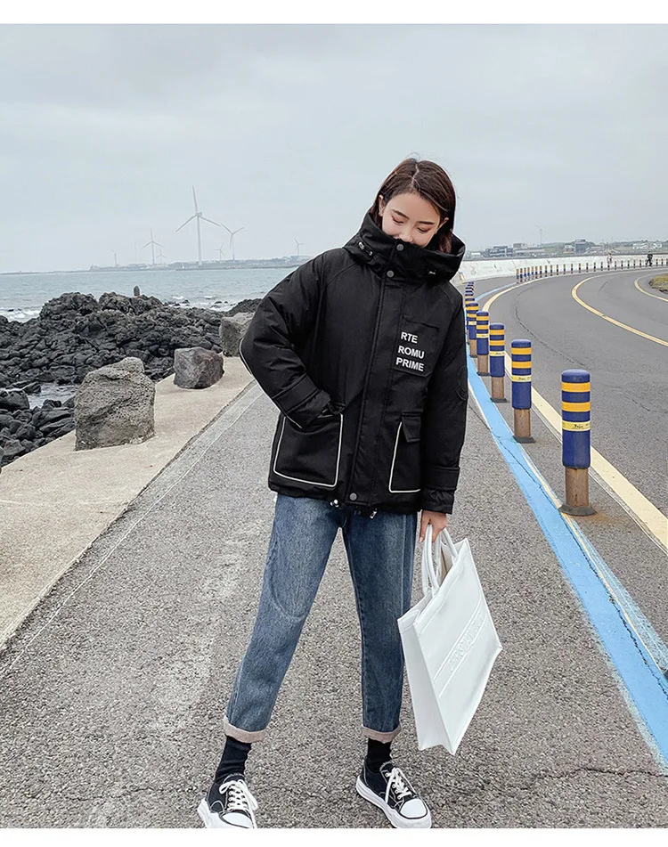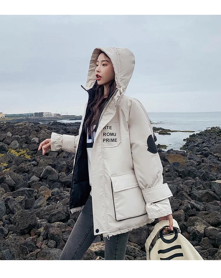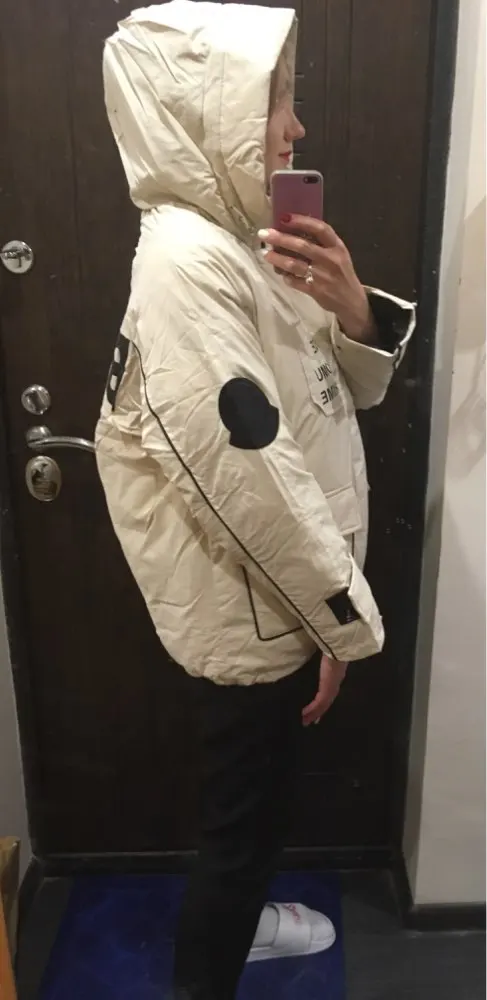 The jacket is warm, the seams are even. There were several threads that were easy to cut. On the hood and bottom of the jacket there is an elastic band, if necessary it can be tightened. My size is 44, the store recommended l. the jacket is voluminous, the sleeves are just right, in general to buy i recommend.