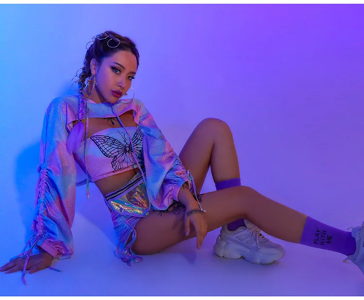 FREE SHIPPING Festival Outfit Nightclub Dance Costume Bright Silver Reflective JKP4904
