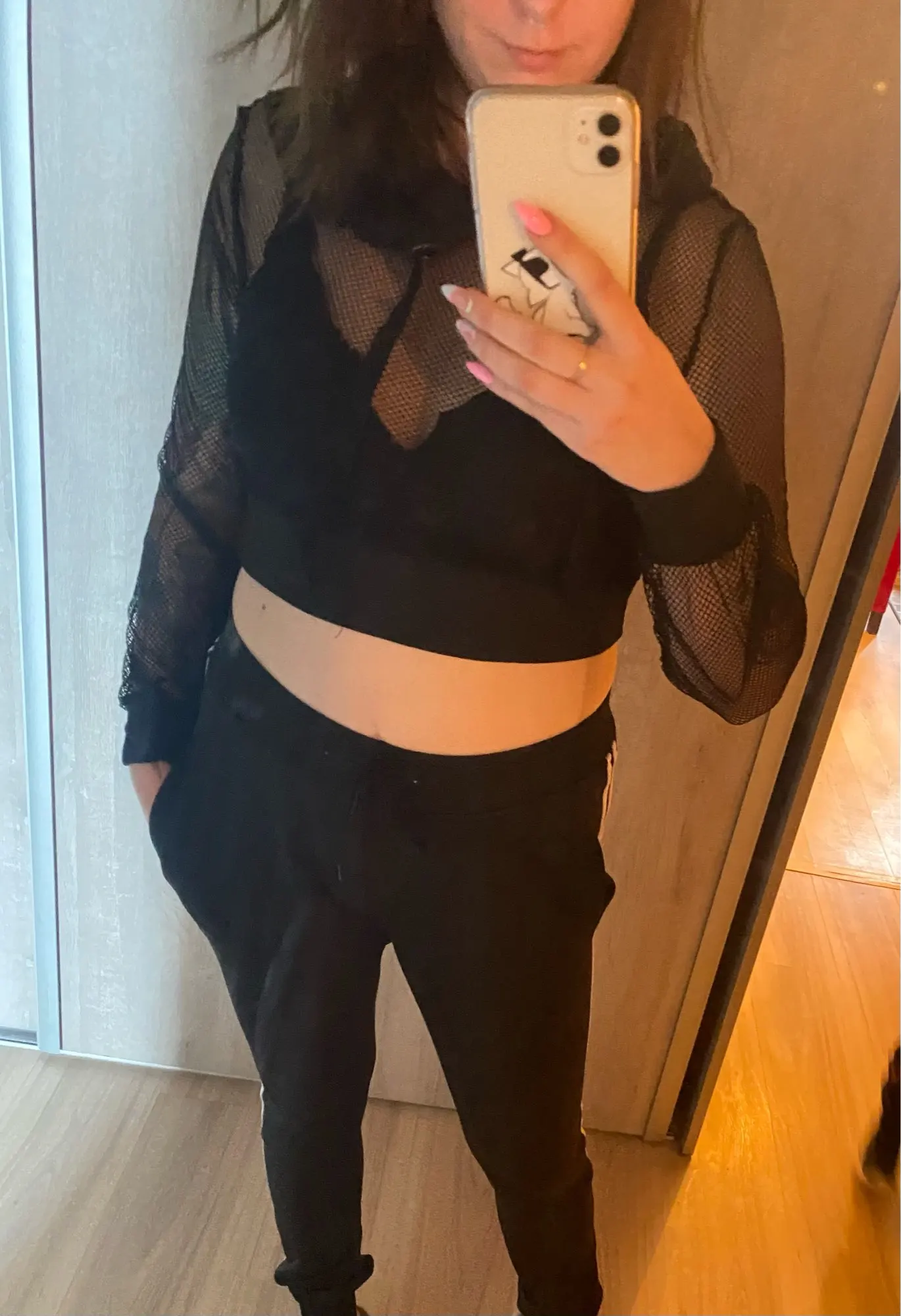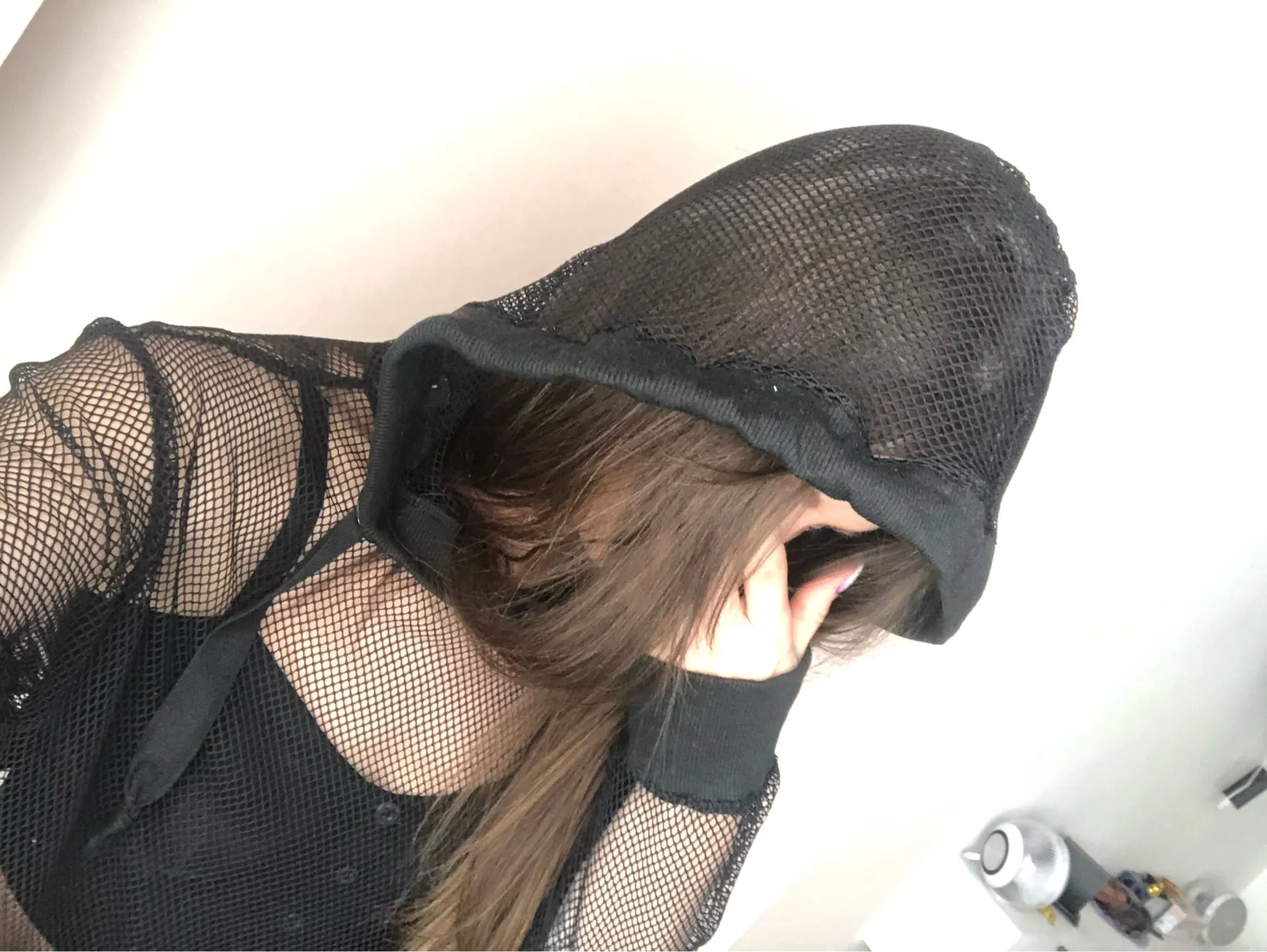 FREE SHIPPING Fishnet Mesh Hooded Long Sleeve JKP4571