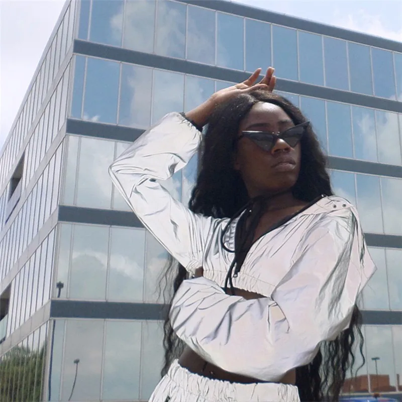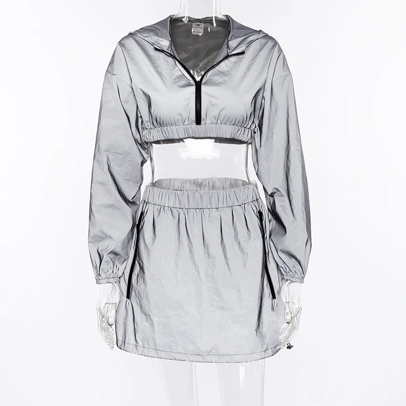 FREE SHIPPING flash reflective zipper women Two piece set JKP1396