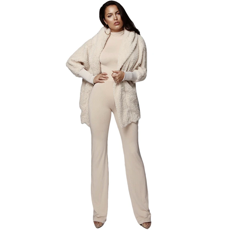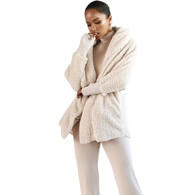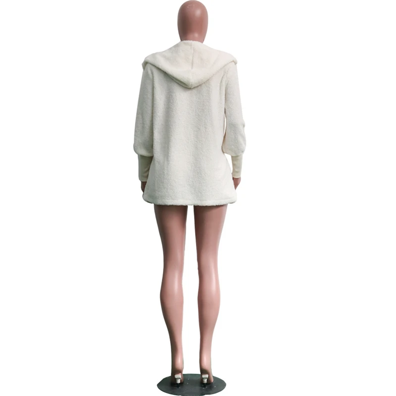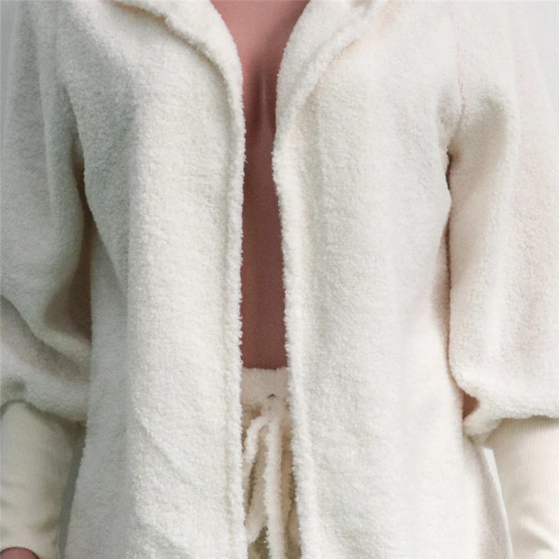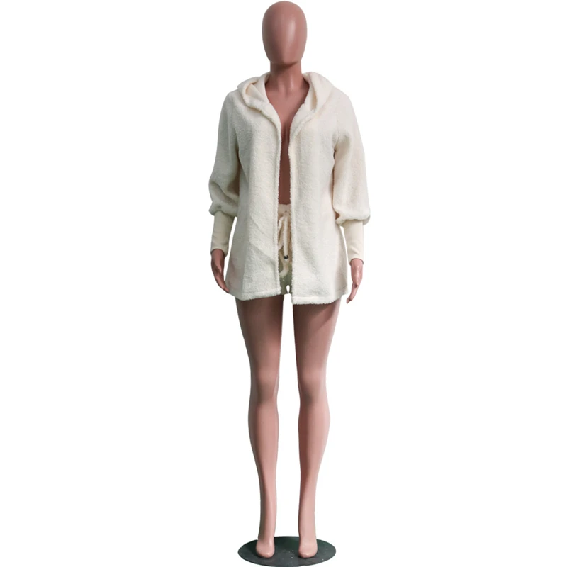 FREE SHIPPING Fleece Two Piece Set Long Sleeve Hooded Cardigan Coat JKP1382