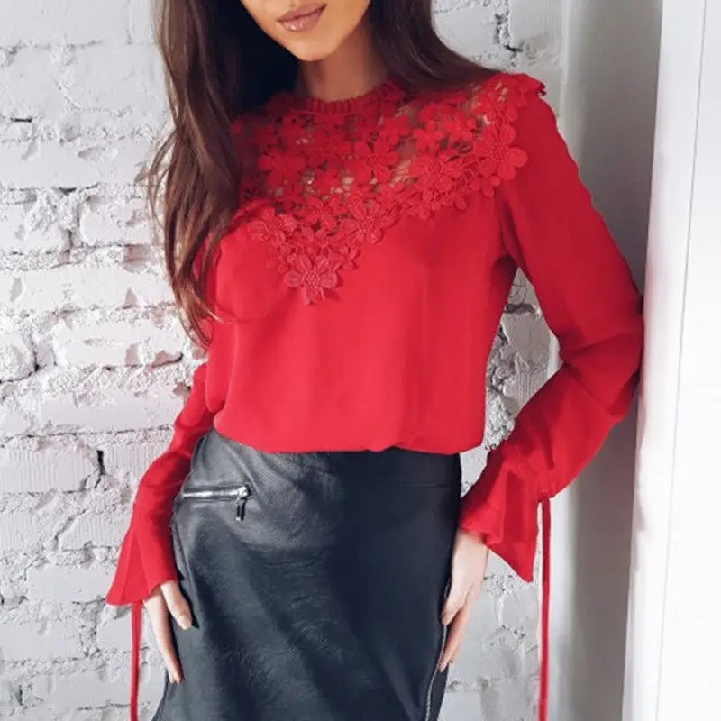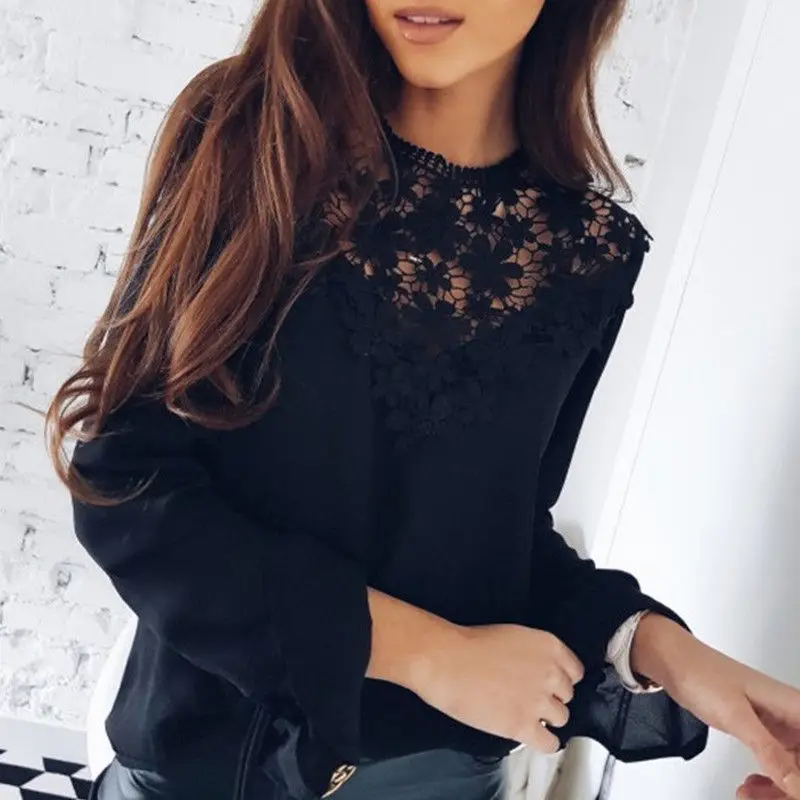 FREE SHIPPING Floral Fashion Hollow Blouse Women’s Loose Long Sleeve Cotton Casual Womens Tops And Blouses Tunic Tops Casual Shirt S-XL JKP1926