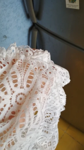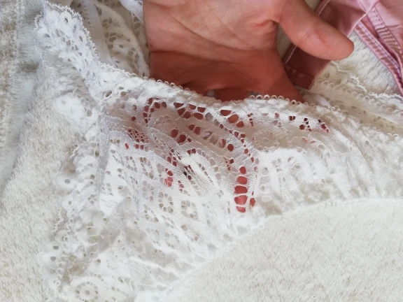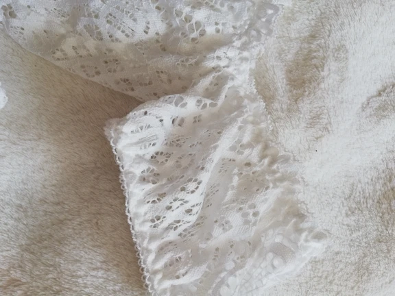 I really liked the kit. The fabric is pleasant to the body, the lace is soft, beautiful. Sleeves on the top a little press.