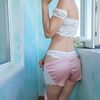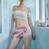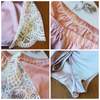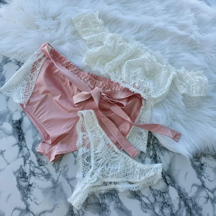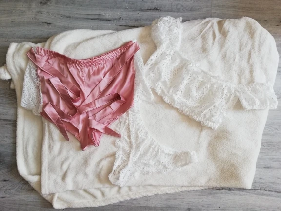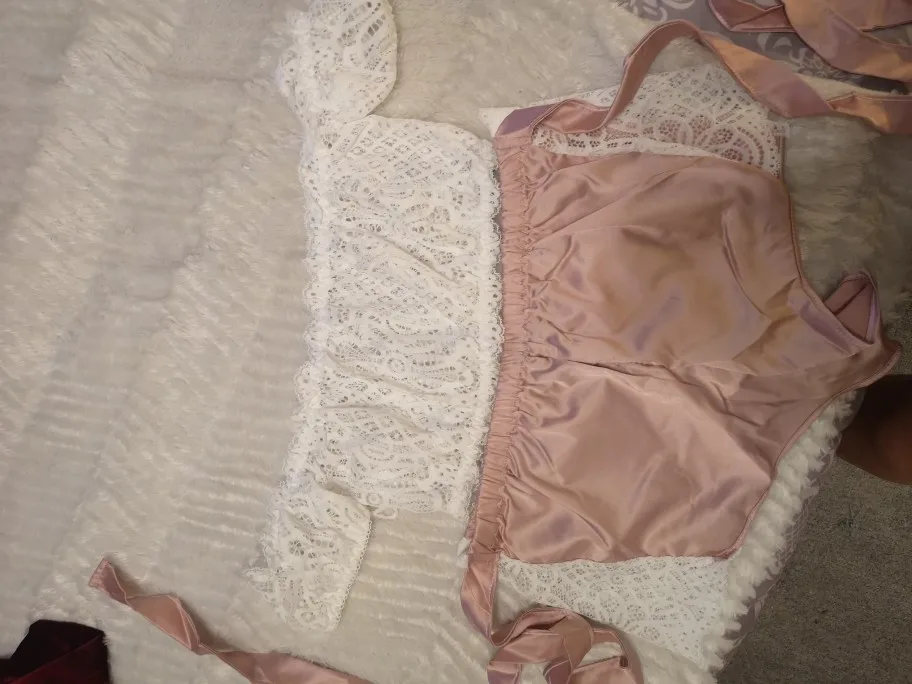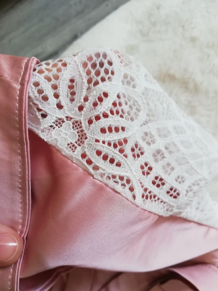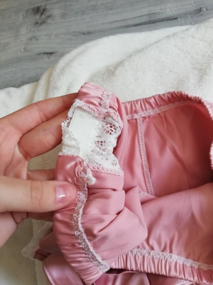I liked the kit very much! He's so cute and sexy at the same time that just wow. The color is very delicate pink. Lace is just excellent! Everything is very neat, and they do not look cheap at all. To sewing personally, i have no complaints. The elastic stretches well, does not fall off and does not press. Bandages well, very long, i had to tie around myself once, and they are with an elastic band inside. On my parameters about 85-72-100 chose the largest size xl and everything went well! Shorts do not press, there is still a place-such clothes and should be free. T-shirt, i think, for girls with small breasts. Although it stretches well, but the place is not so much. Sleeves also stretch, but will go on a thin hand-i'm quite a little cramped. Top shines through (naturally. He is from one lace)-had to edit the photo