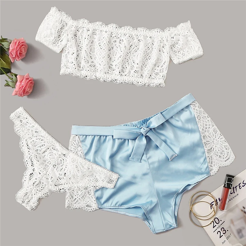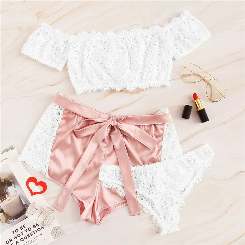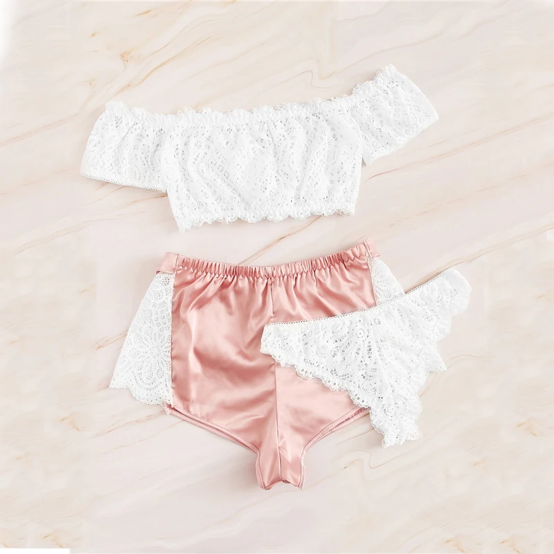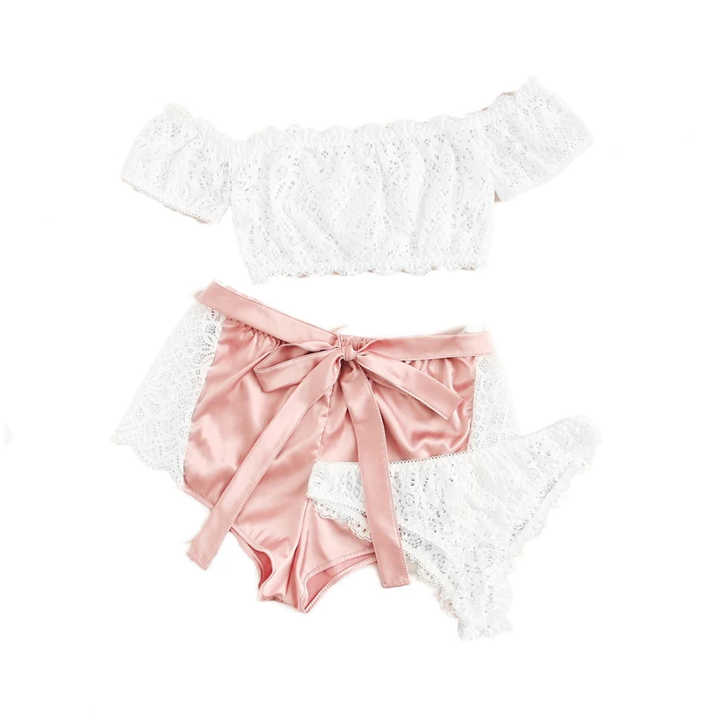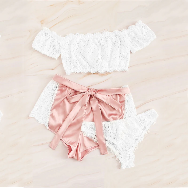 I liked the kit very much! He's so cute and sexy at the same time that just wow. The color is very delicate pink. Lace is just excellent! Everything is very neat, and they do not look cheap at all. To sewing personally, i have no complaints. The elastic stretches well, does not fall off and does not press. Bandages well, very long, i had to tie around myself once, and they are with an elastic band inside. On my parameters about 85-72-100 chose the largest size xl and everything went well! Shorts do not press, there is still a place-such clothes and should be free. T-shirt, i think, for girls with small breasts. Although it stretches well, but the place is not so much. Sleeves also stretch, but will go on a thin hand-i'm quite a little cramped. Top shines through (naturally. He is from one lace)-had to edit the photo