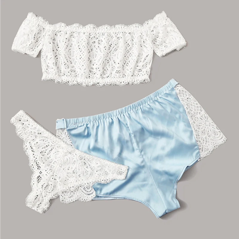 Unmatched kit. At 85-70-97, perfectly approached. Fabric shorts type artificial silk with stretch effect. Top. panties-strong lace. I liked everything)