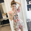 FREE SHIPPING Floral print women suits short sleeves lantern bodysuits lace edge spaghetti strap spirng modis elegant combinaison femme JKP2733