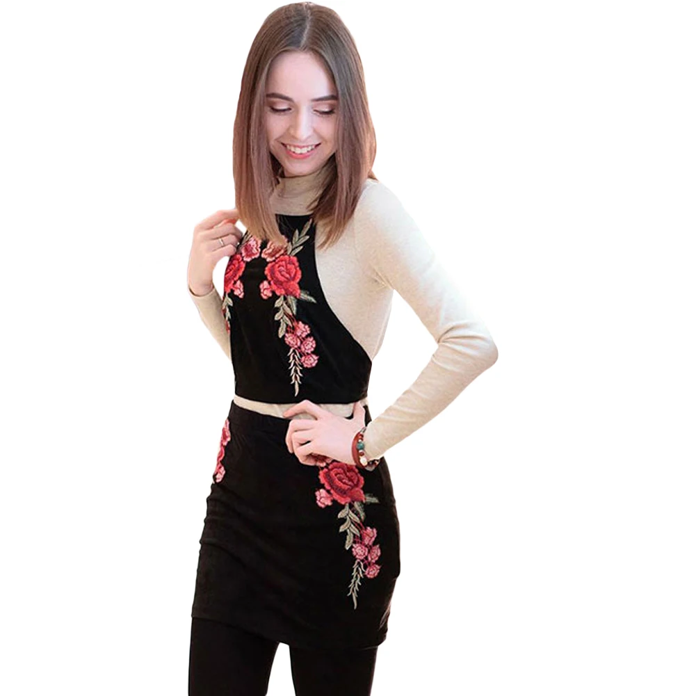 FREE SHIPPING Flower Embroidery Suede Bodycon Dress Two Piece JKP1361