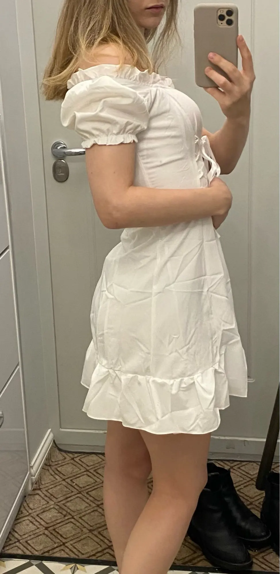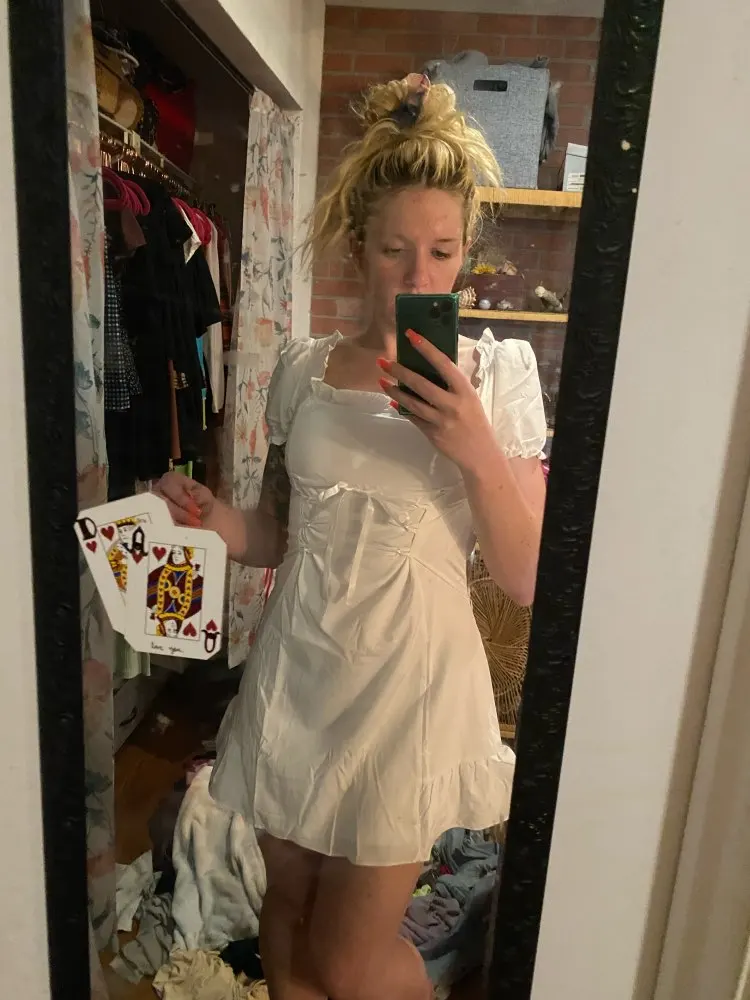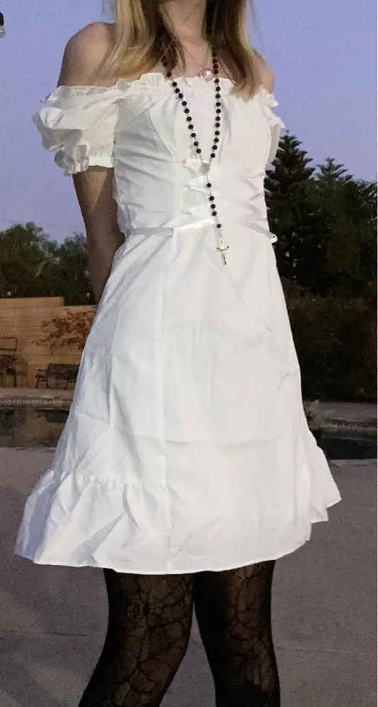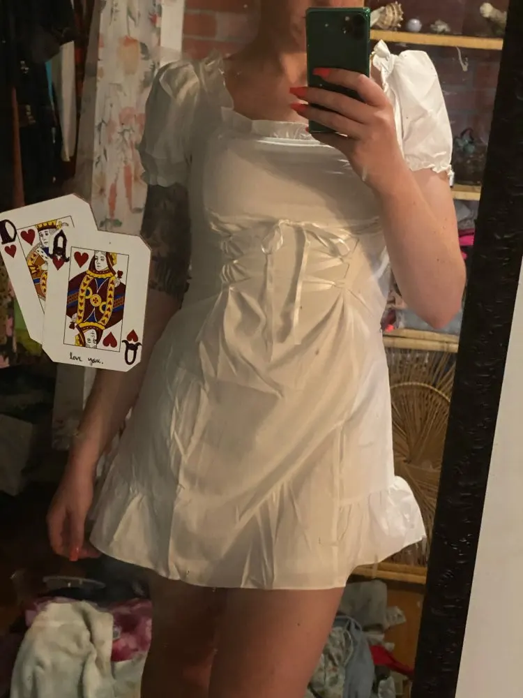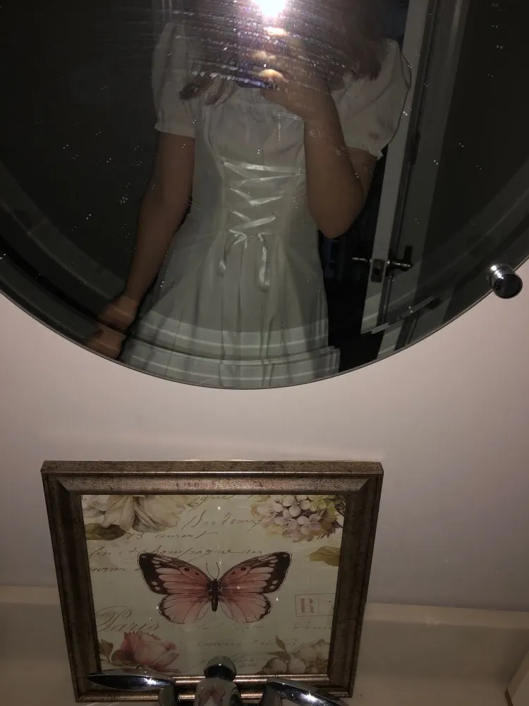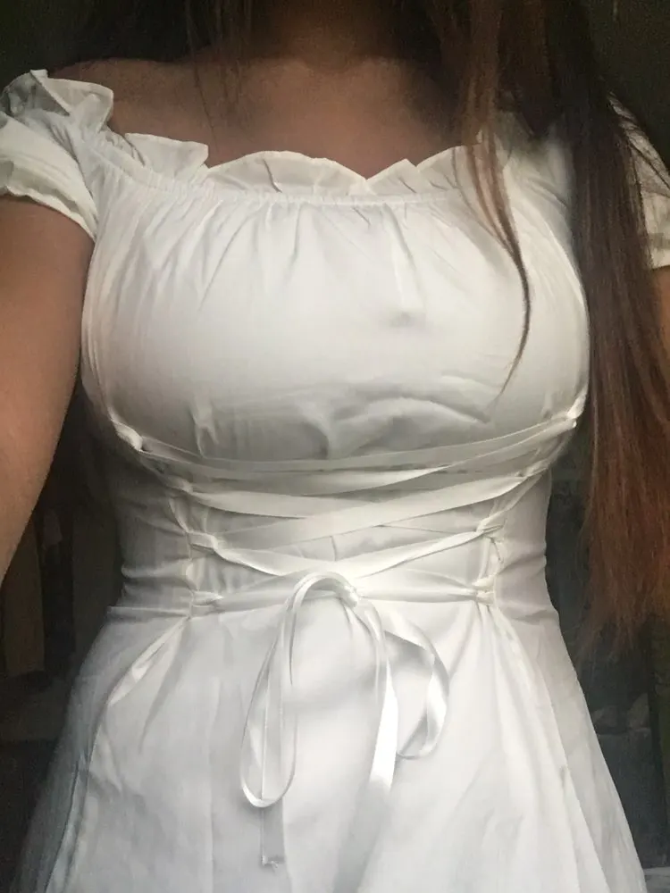 So this dress is pretty cute, it came wrinkly but what can you do about that? Very “bo-peep” vibes. I am 5’8” 150 lbs with a 27-30 inch waist and wear a 36C. A Medium fit me perfectly.