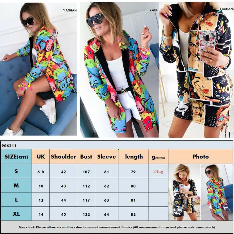 Super happy. Even though the colors are strong I love it. It's a very original jacket. It has a very finite plush inside so it can be worn in autumn and I guess maybe in spring. It closes with zipper, it's a long, baggy jacket. Feel free to buy it and I don't regret it. I love it. I arrive in 7 days to Spain and with good shipping tracking.