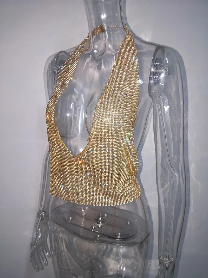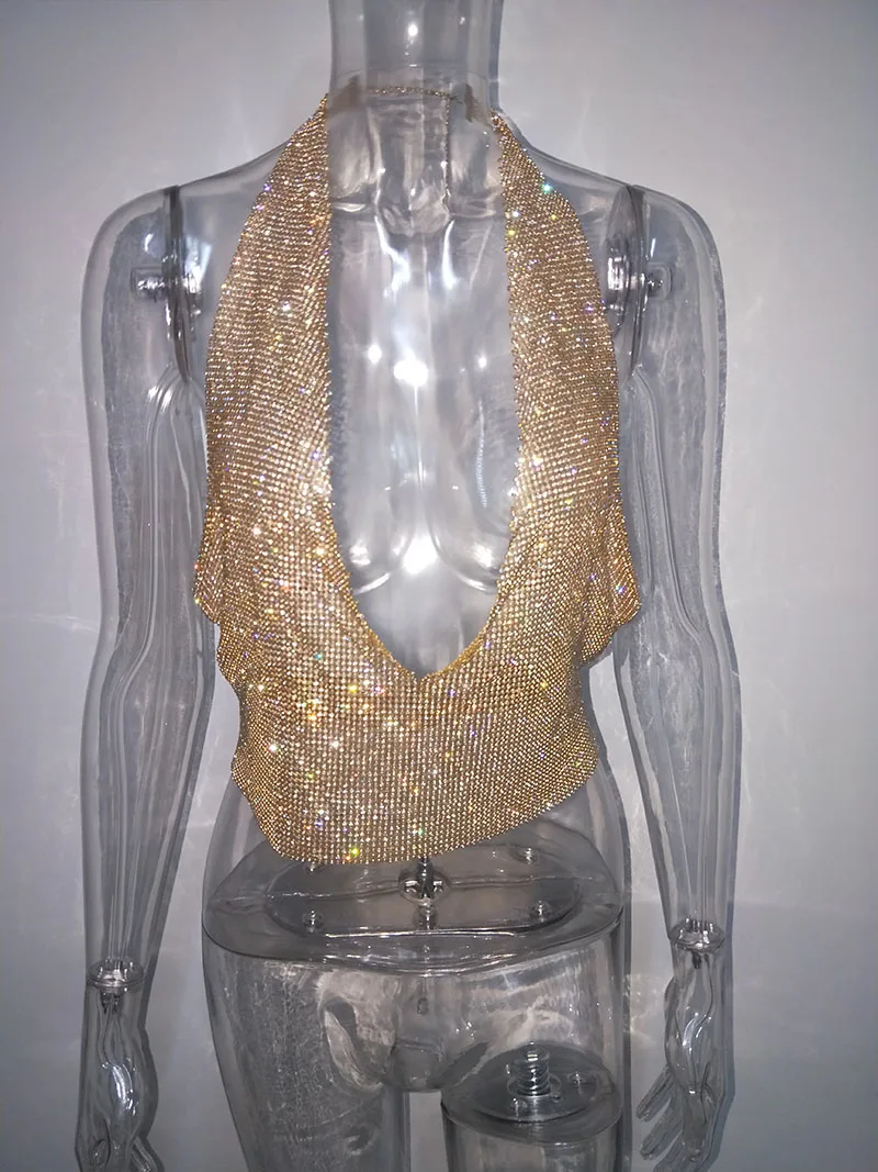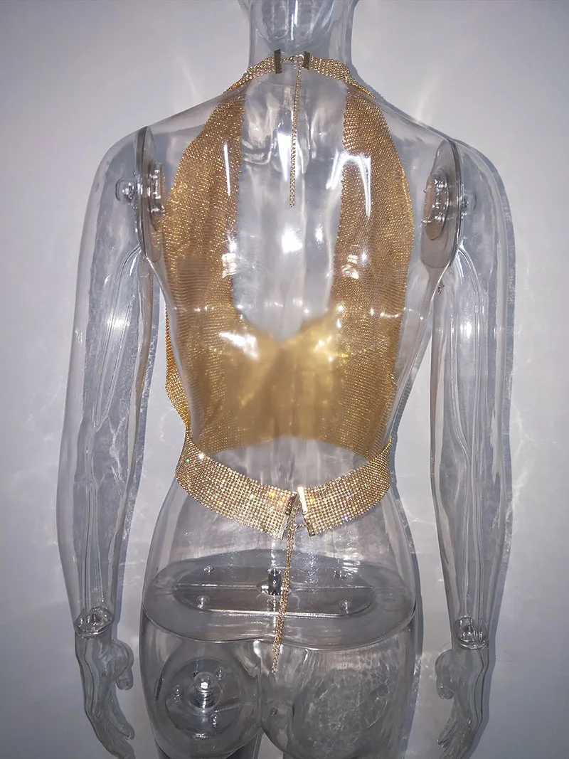 FREE SHIPPING Glitter Crystal Diamonds Metal Crop Top Sequin Metal Bra JKP1437