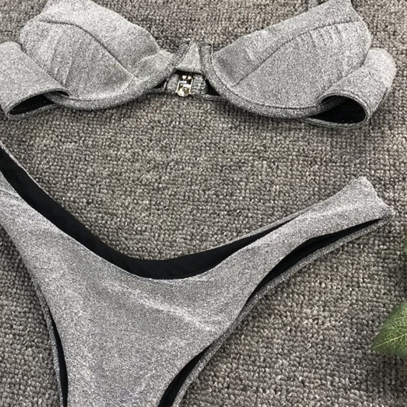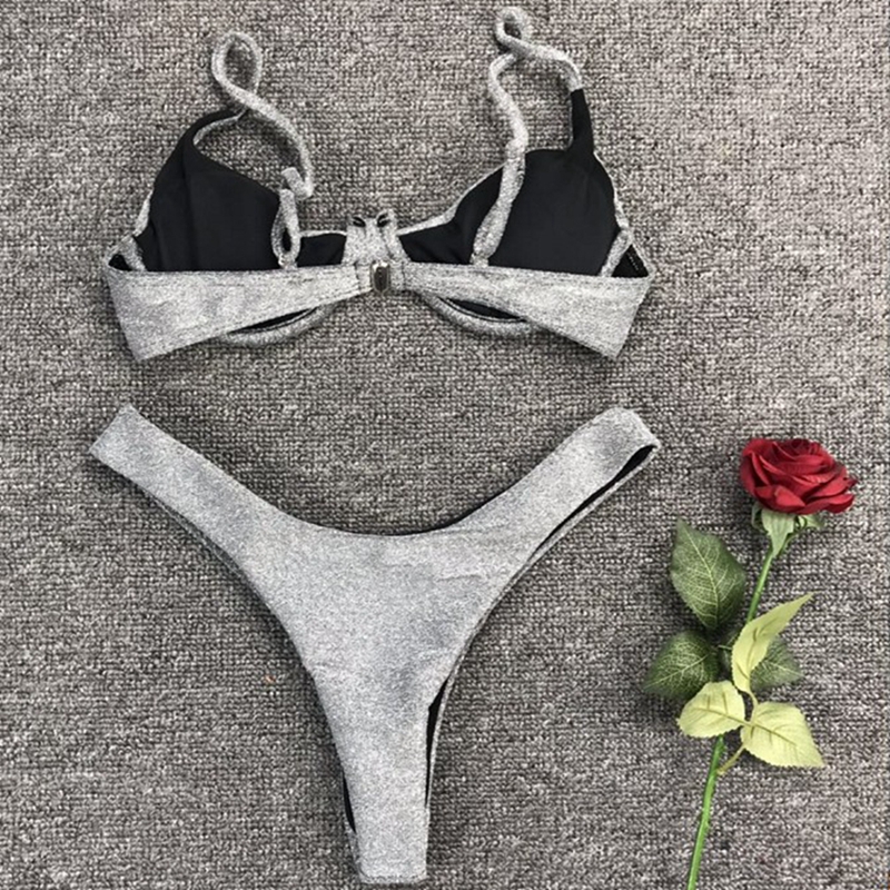 FREE SHIPPING Glitter Fabric Bikini Silver Sequins Two Piece JKP1395
