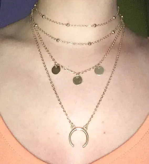 40cm Gold Chain Multi layer Moon Choker Necklace For Women