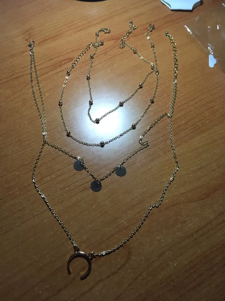 Very nice necklace for such a low price. It's not one part, but three separate necklaces. I recommend it.