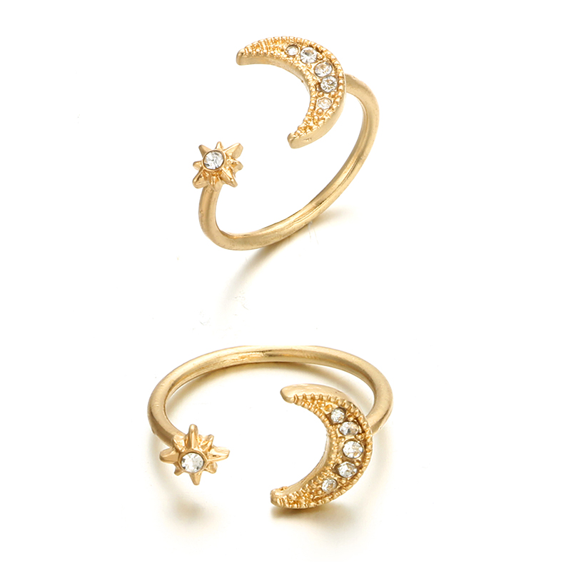 FREE SHIPPING Gold Silver Moon Star Crystal Rings JKP635