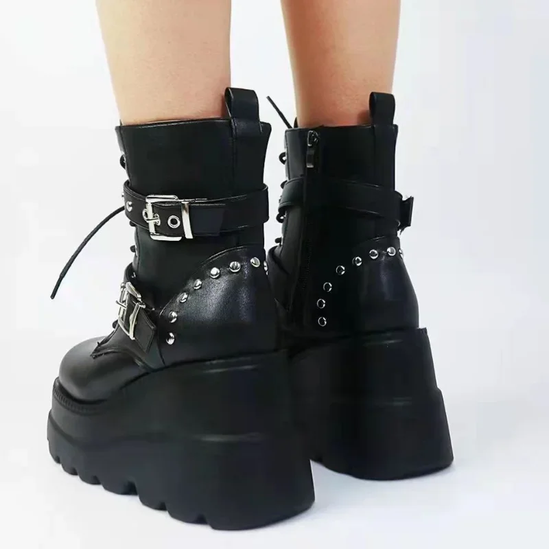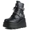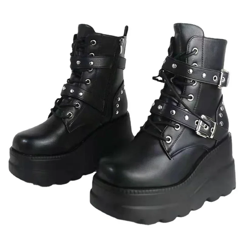 FREE SHIPPING Gothic PU Leather Ankle Boots Lace Up Platform Motorcycle Style JKP7316