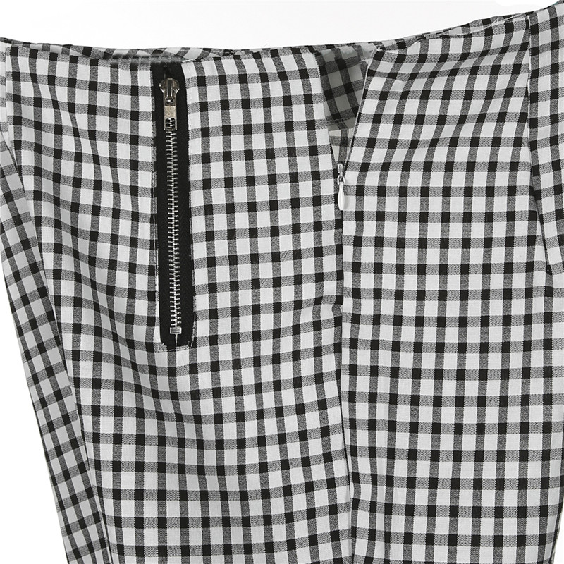 2018 Gray White Plaid Pants Sweatpants Women Side Stripe Trousers Casual Female Streetwear Comfortable Elastic Pants Joggers