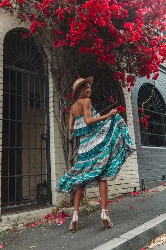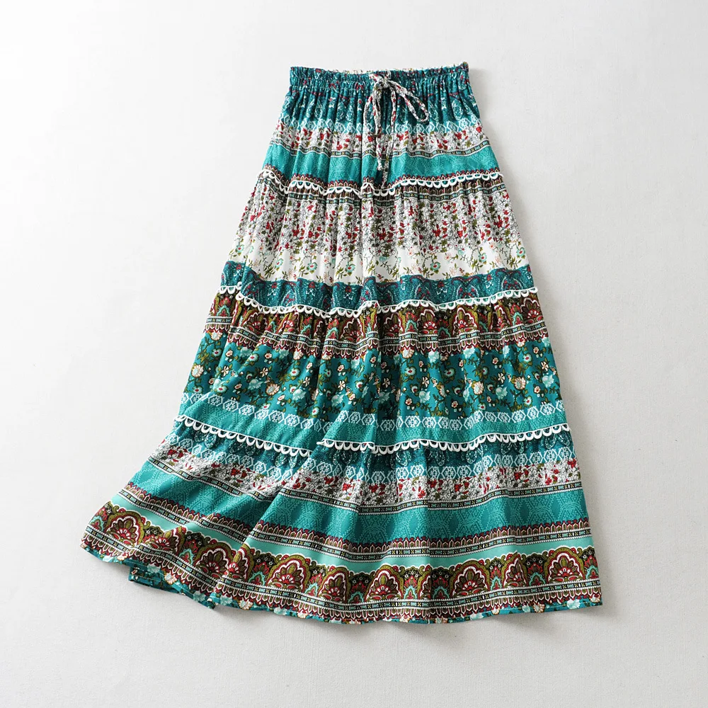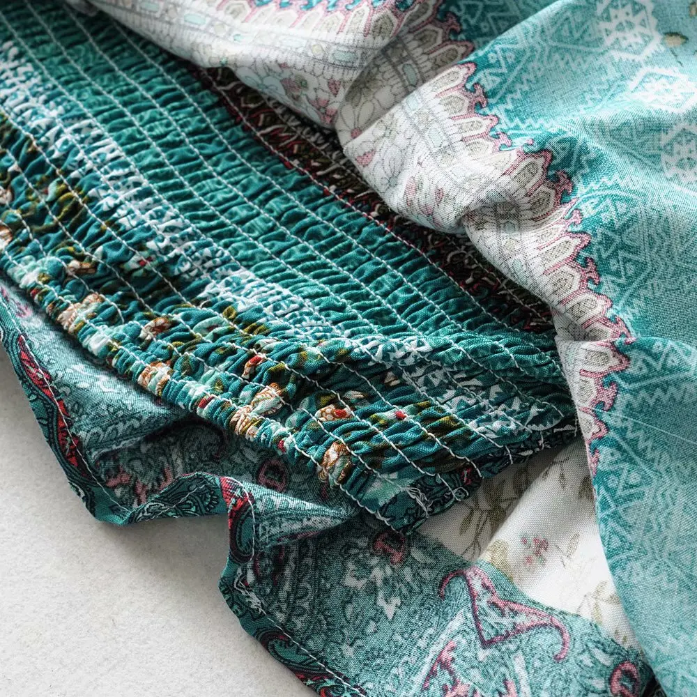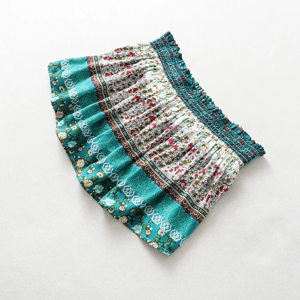 FREE SHIPPING Green Floral Print 2 piece Set Dress Boho Crop Top + Boho Ruffle Skirt 2 piece Set Women Dresses Beach Casual Dress Suit JKP1673