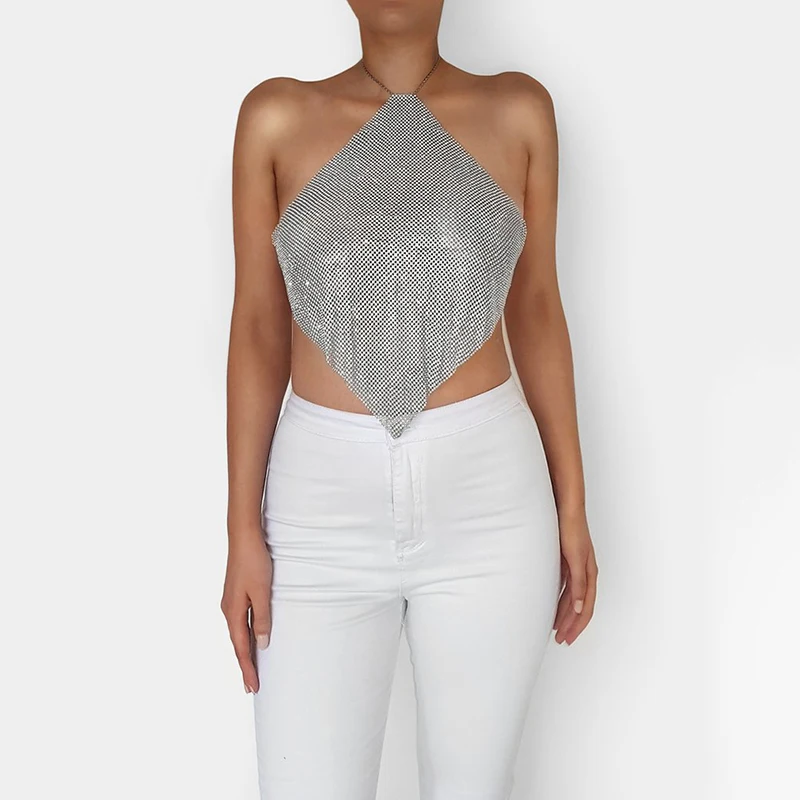 FREE SHIPPING Halter Sequin Camis Crop Tops JKP1301