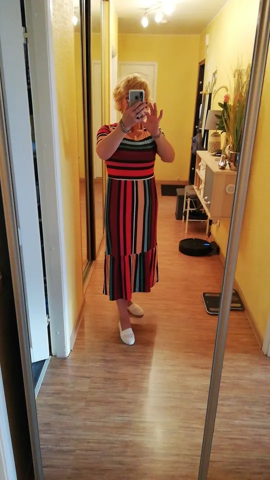 Delivery lightning, for two weeks! The quality of synthetics is certainly but pleasant. The material stretches well. At 48 times ordered first xl, but then wrote to the store to change to l. responded and changed the size. Well done, then what it was necessary, in the belt is not even a little loose. But, as they say, cece dictate their rules)) in general, at 48 it is necessary l, if the chest is smaller than the size of s-d, then you can take m, as it stretches well! And so funny. On the height of 164 to the ankle length. Recommend!!