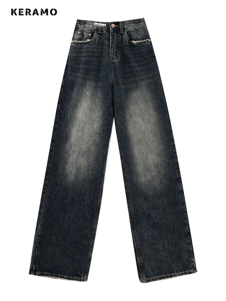 Free Shipping Harajuku High Waist Wide Leg Jeans Y2K Retro Streetwear Denim for Women JKP7242