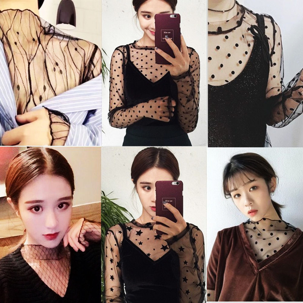 FREE SHIPPING Harajuku Mesh Shirt Hollow Transparent Undershirt Star JKP506