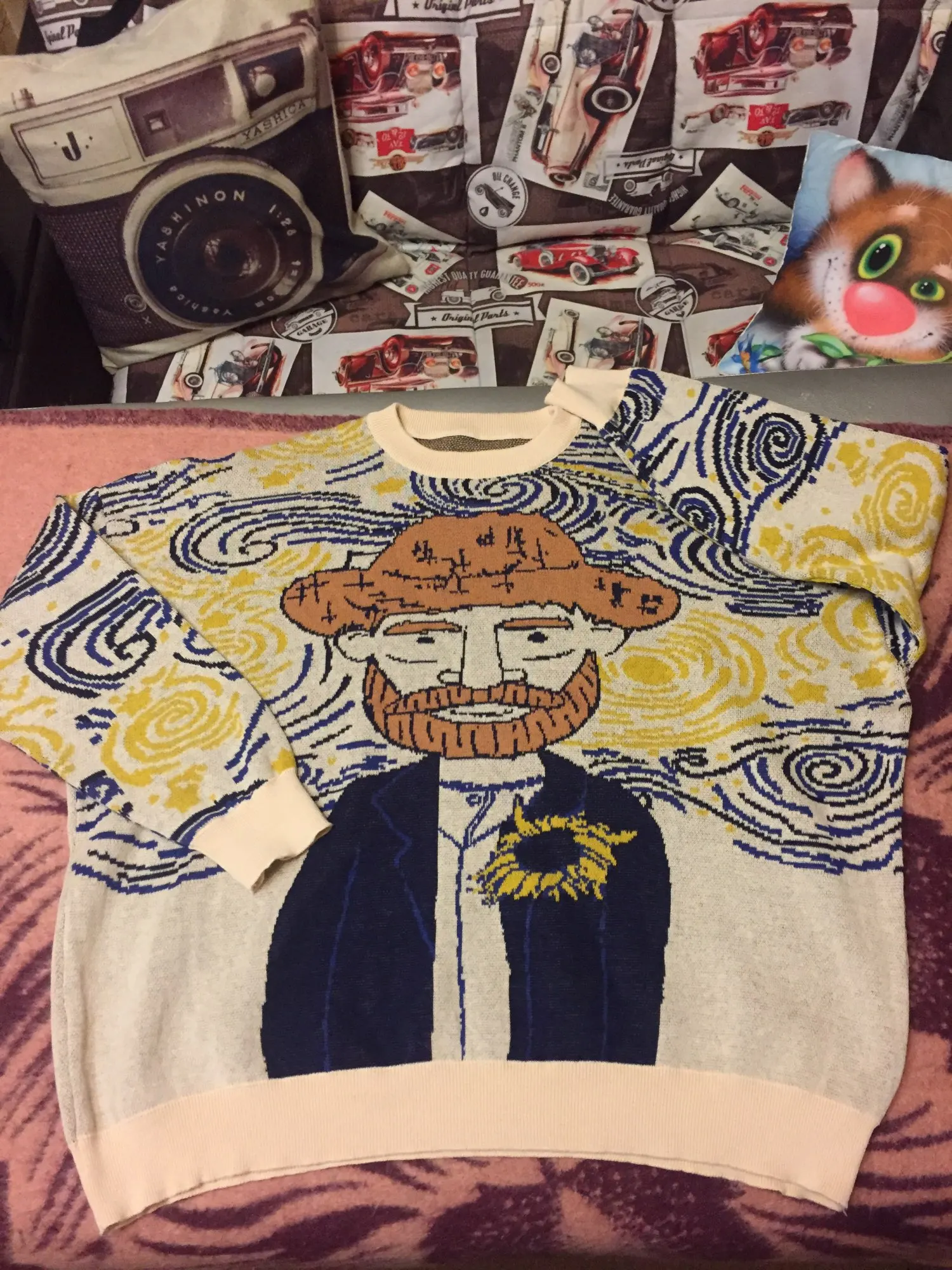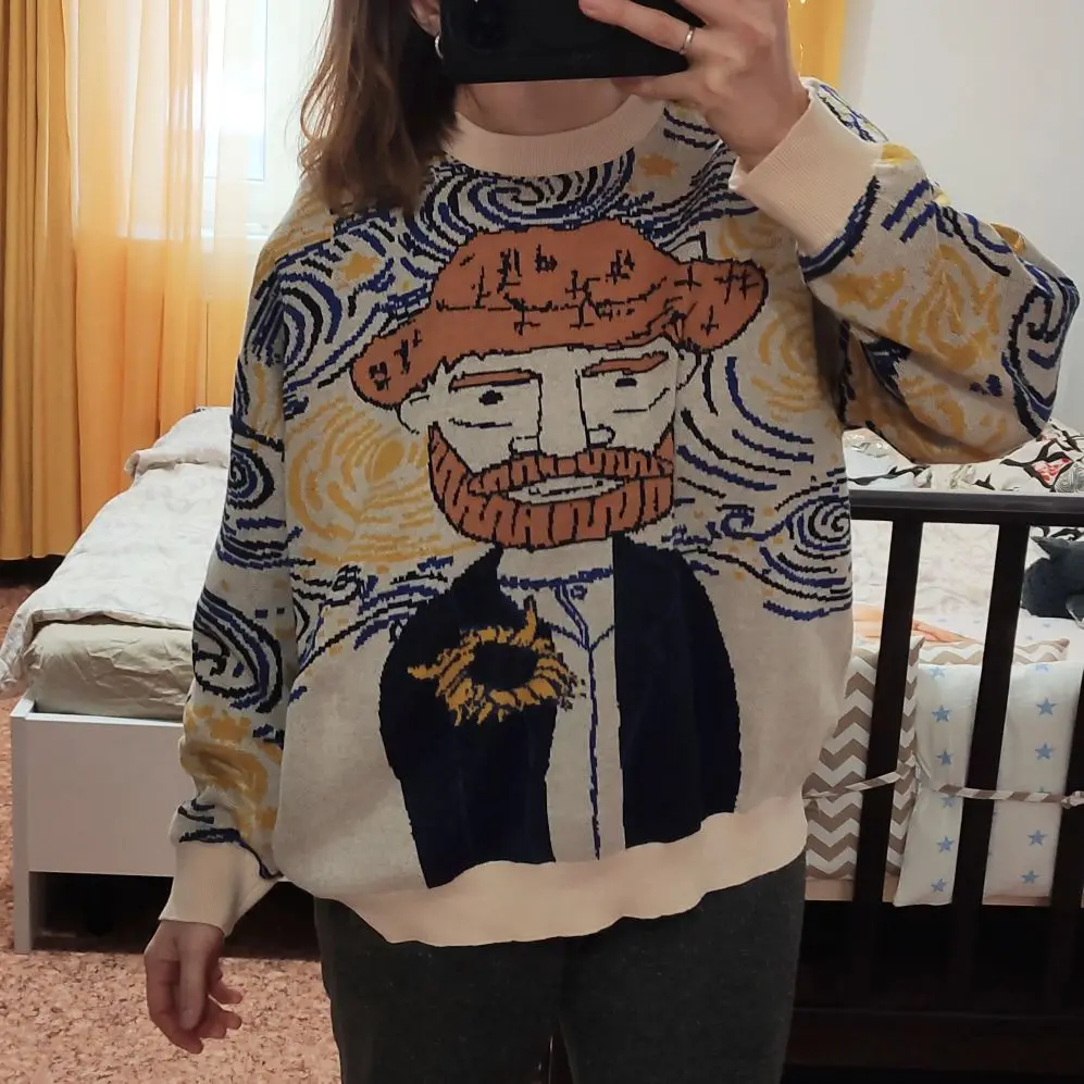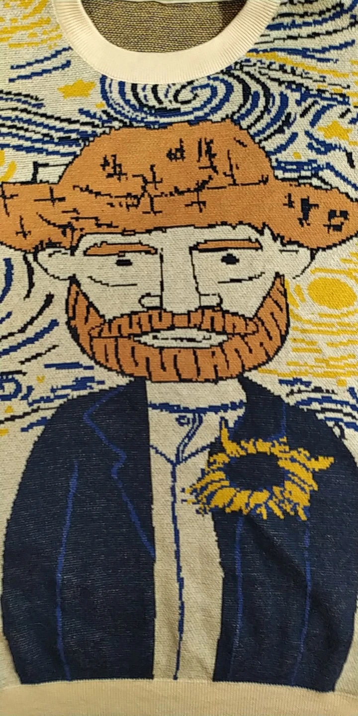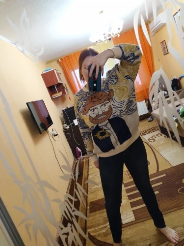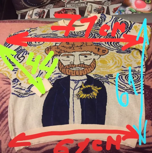 A thin knitted sweater is a good idea with embroidery, a deflated sleeve. One thing I did not like is a very small collar, the throat is unpleasant. Nice sweater, bought because picture looks just like my dad. One thing that is really supplier to me is that the neck is very small and pushing after an hour wearing it.