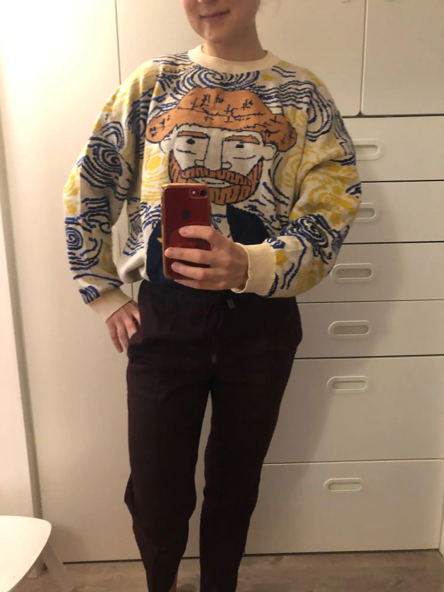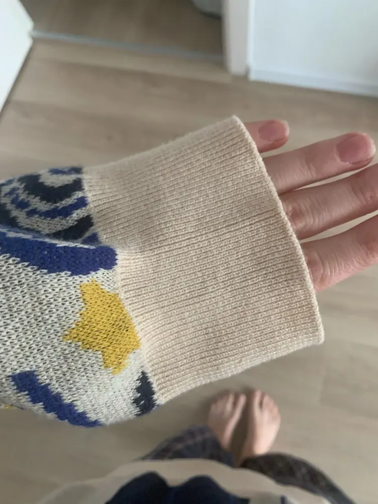 The sweater is like this, only not my style, I have wide shoulders, and the neck is short, I sat on me in a square nest way. The lower cuff does not hold exactly as the nozzle hangs.