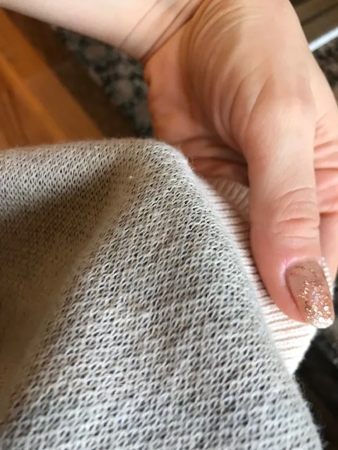The sweater is very pleasant to the touch and to the body. Sits like an oversize model. Came in a short time. Recommend.