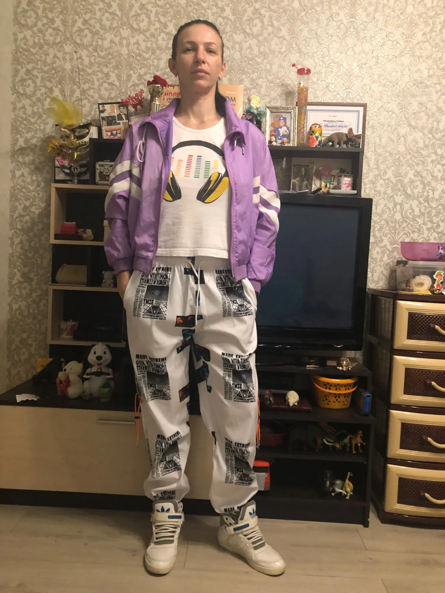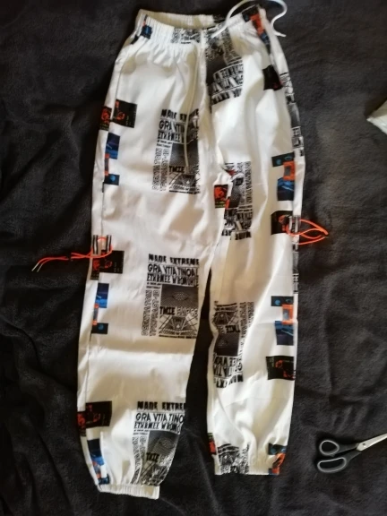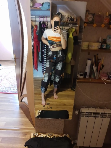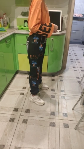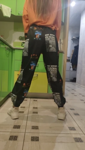 The order came very quickly. Cargo pants in the style of hip-hop sat on a teenager girl Growth 155 perfectly. (size S). Fashionable Street pants in the style of high street-my daughter is delighted, goes to them for dancing classes. The fabric is pleasant, synthetics, the print is well printed! The thing didn't smell anything. Wonderful goods.