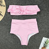 Separate swimsuit with "waves" on the chest. Top shape: bando. Not exactly mine. But a big plus: ruffles add volume to the top. And inflated swimming trunks will hide the shortcomings of the waist. The vertical strip slim, which will also reduce your volume. 3 color colors. Yellow, pink and blue. Material: spandex, polyester Size m on my parameters 86-63-94 Delivery time: 12 days The price: 697r.