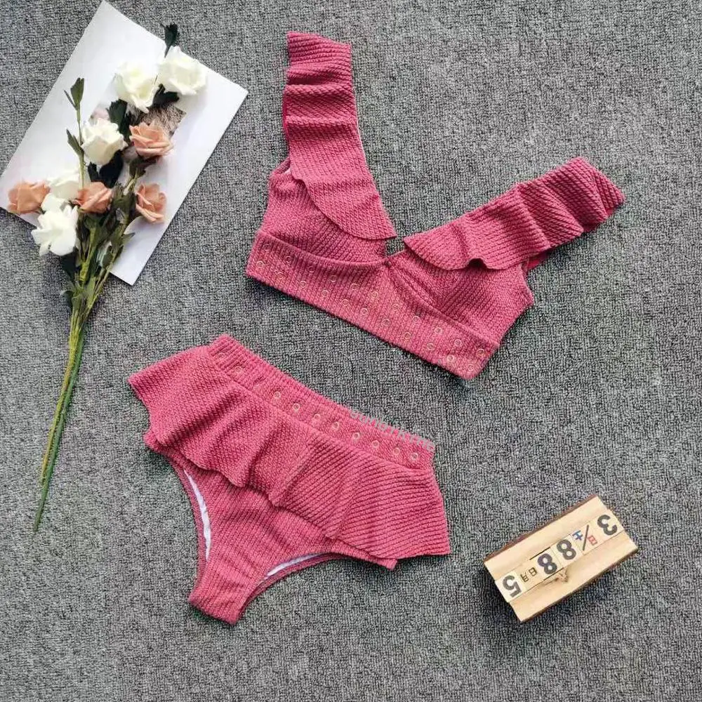 FREE SHIPPING High Waist Bikini Women’s Ruffles Flounce Bikini Set Two Pieces Swimsuits Push Up Bathing Suit Biquinis Beachwear JKP2777