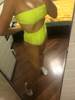 Shipped relatively fast. Very thick, high quality material. Comes with cups, able to take them out. VERY bright I love it. I got a size small and it fits be perfectly I weigh 127 and I’m 5ft 3inches. In certain lighting looks yellow and sometimes lime neon green.