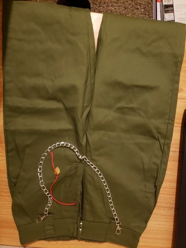 These are now one of my favorite pants, great color and the cut style for the pants is really cool & diggin the chain clip on, it completes the look, only downside was loose stitching for the button/clip thing for the inside front of the pants on top of the zipper but easy fix. also came with a cute leaf bracelet~♡