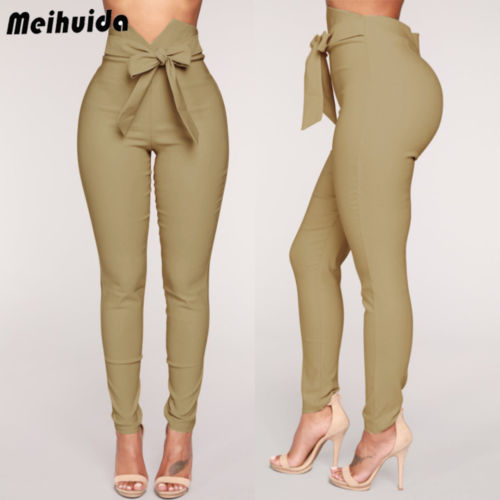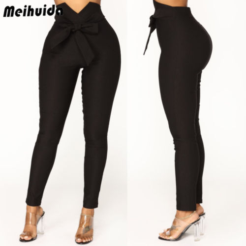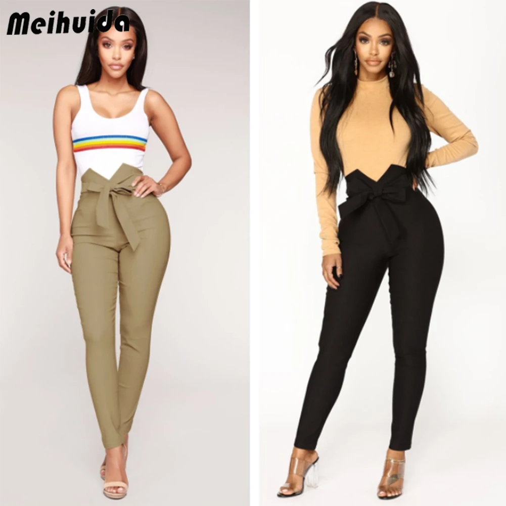 FREE SHIPPING High Waist Drawstring Elastic Long Pants JKP1065