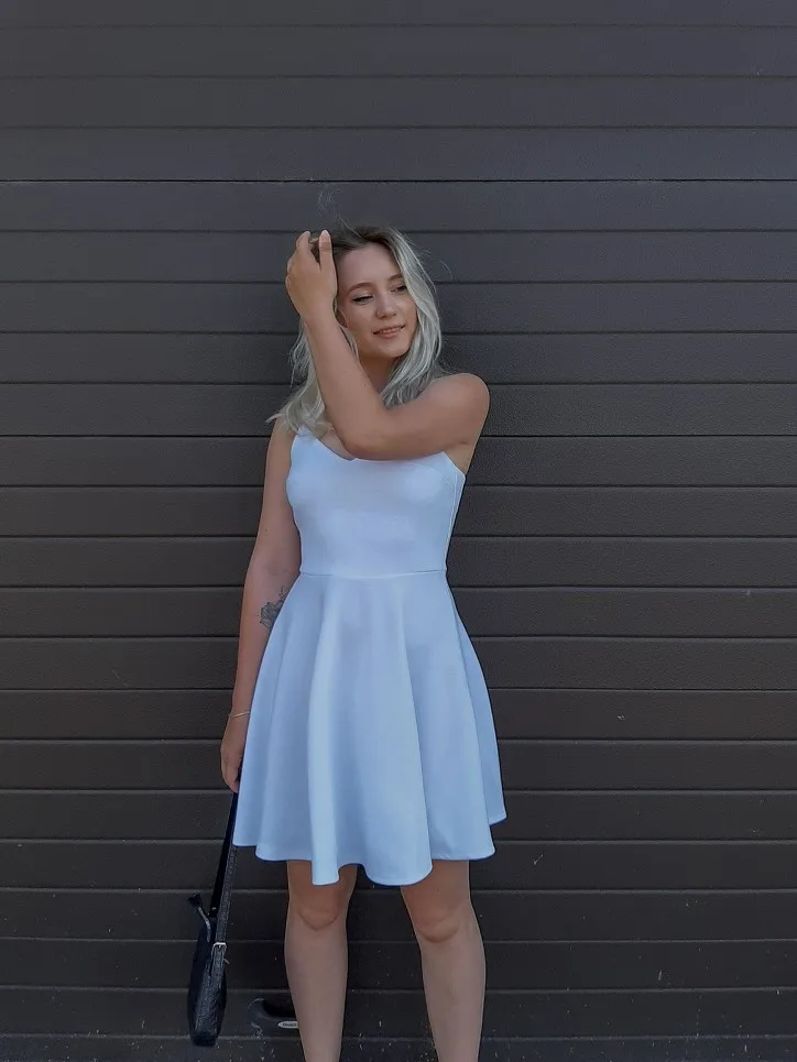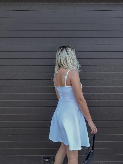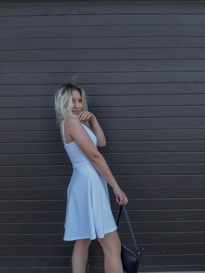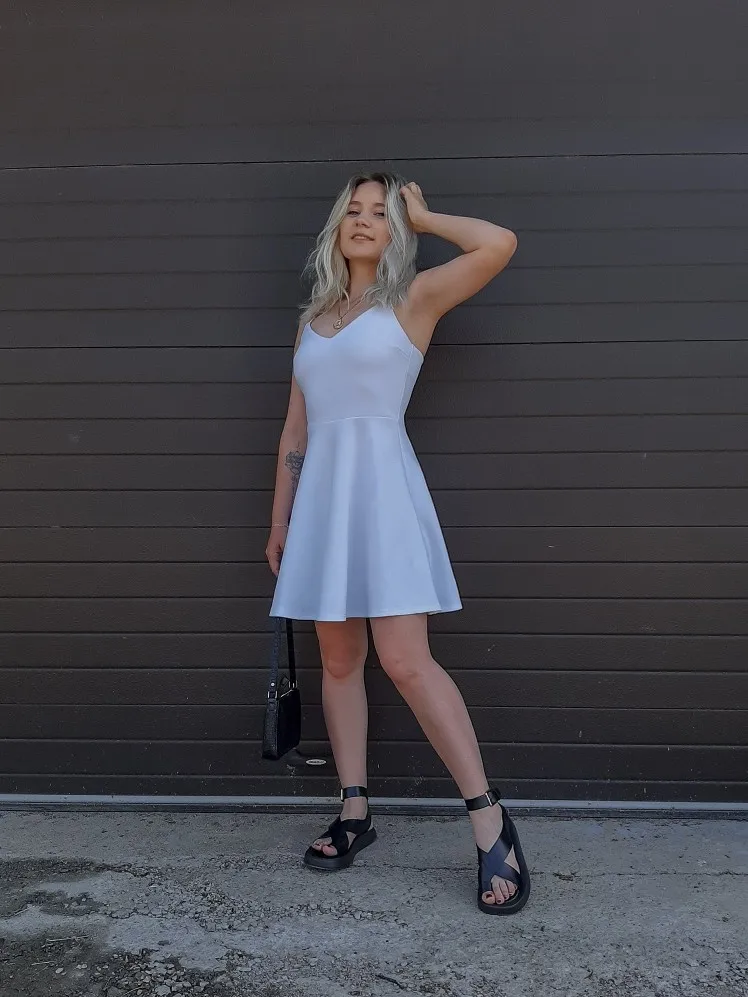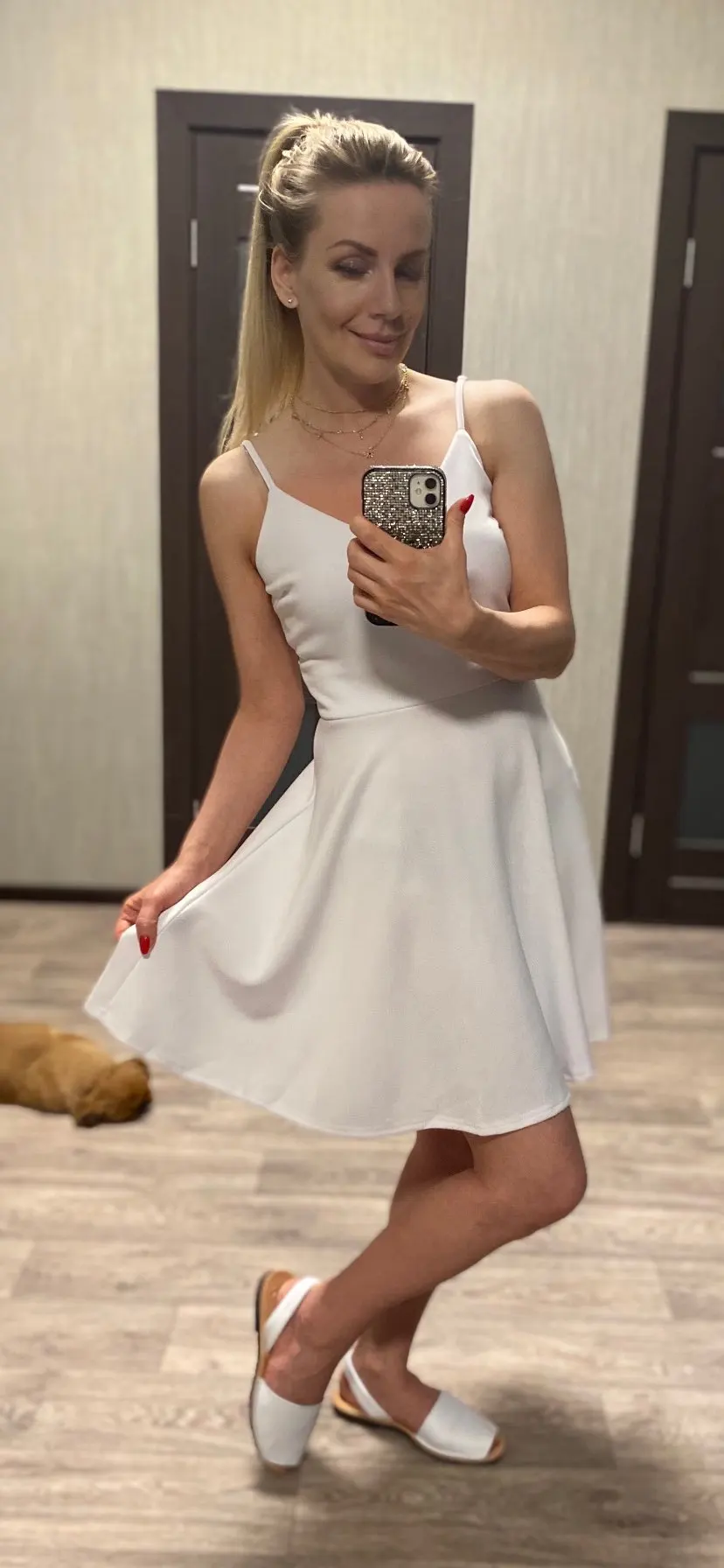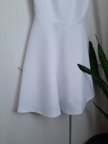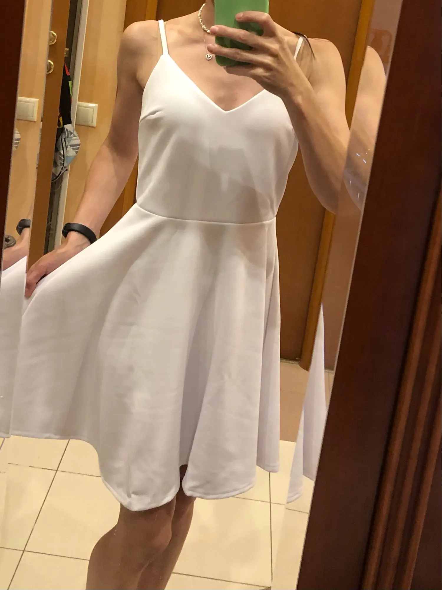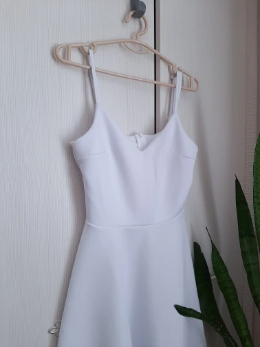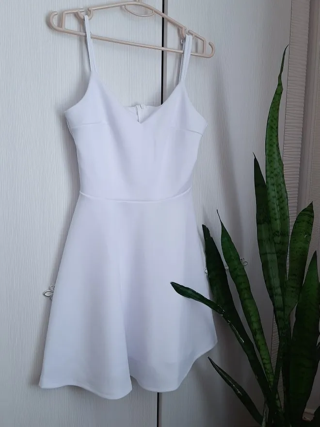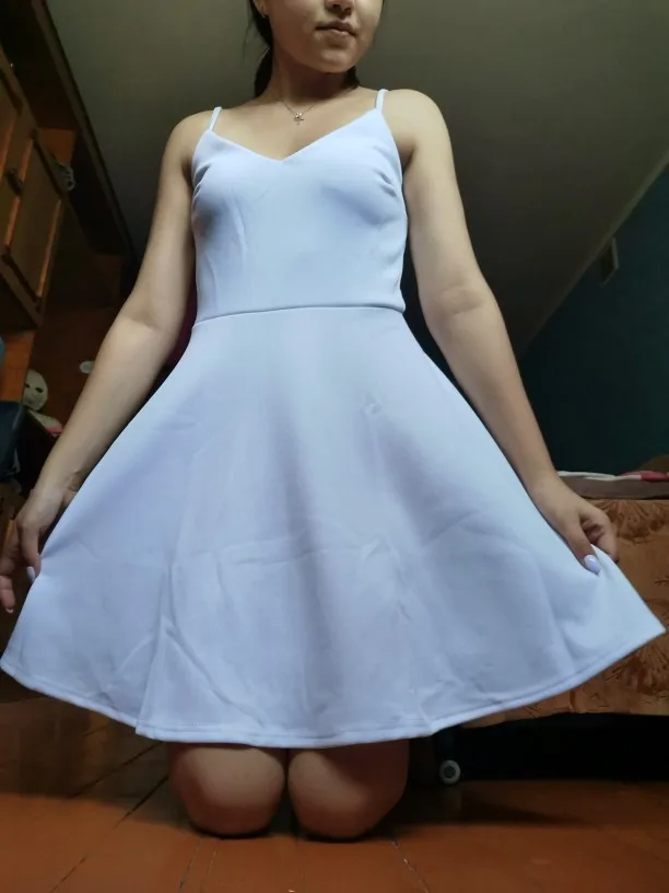 This is a simple, but at the same time cute dress. The store has several colors to choose from, I ordered myself White and size S, my parameters are 88-67-90, height 158 cm. Order seller sent quickly, track number tracked. delivery month to Belarus. The dress is very pretty, snow-white color. Material polyester with cotton. Dense, without lining, slightly shines through. But if you put underwear under the bottom in the tone of the skin, then nothing is visible. Thin loops, they are adjustable. High waist and full skirt. Behind the dress is fastened to the lock. Sits well, according to the figure. Length to my height just above the knee. This dress is ideal for walking or on some holiday, just add a little accessories. The dress is beautiful, the price is free, so I safely recommend