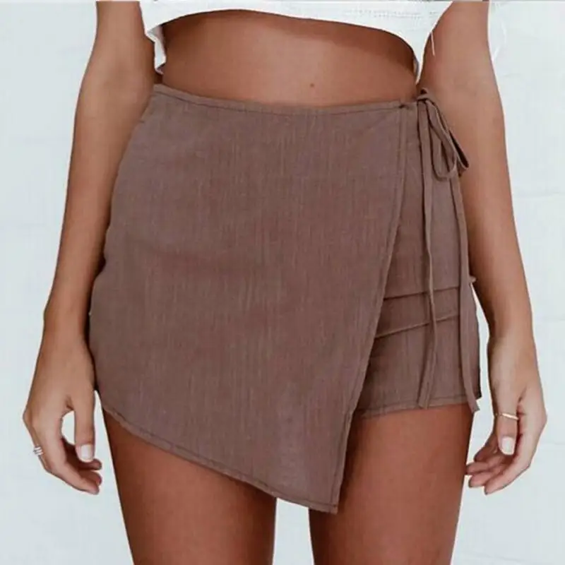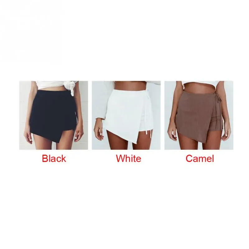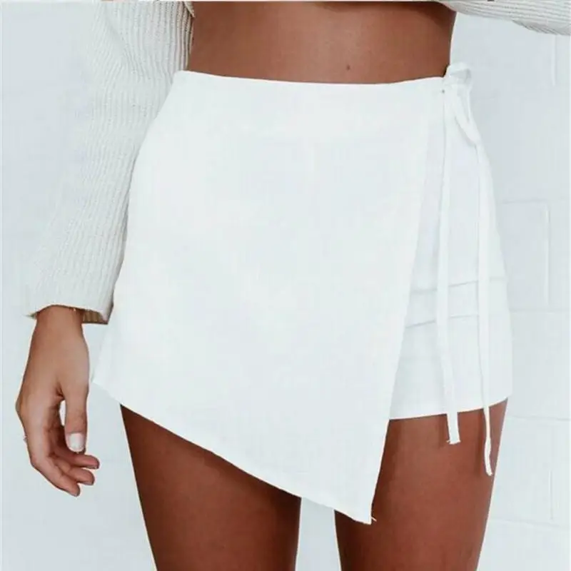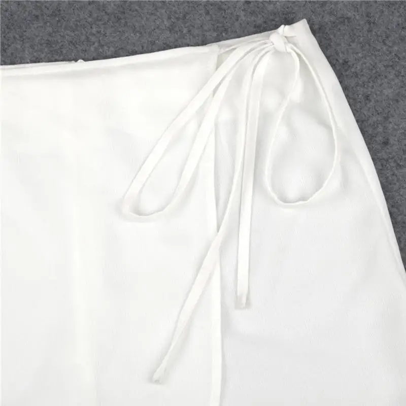 FREE SHIPPING High Waist Skirt Lace-up Slit Short JKP1376